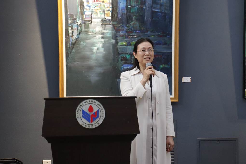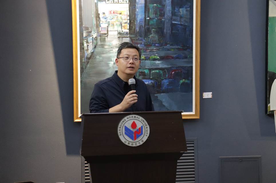 开幕式伊始,由美术学院党委书记胡晓明致辞,她首先对活动的举办表示热烈祝贺,并勉励同学们继续追求个人目标,不忘初心。同时宣布,油画系在此次报送第14届全国美展山东区的作品中,均成功进入初选,获得佳绩,这是对同学们艺术才能的充分肯定,也是对美术学院教育成果的展示。
