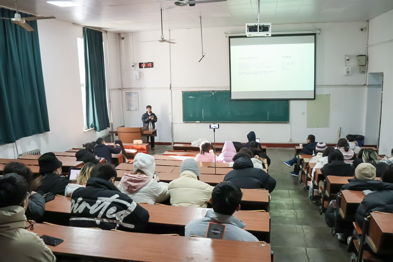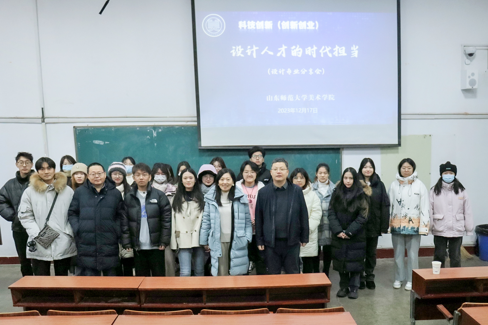12月17日下午,美术学院于山东师范大学千佛山校区二号教学楼2214顺利举办“设计人才的时代担当”——设计专业分享会。美术学院优秀毕业生齐高宇、刘翀担任主讲人,美术学院教师邢益波、刘冉、丁彬担任主持人,美术学院部分本科生到场聆听。