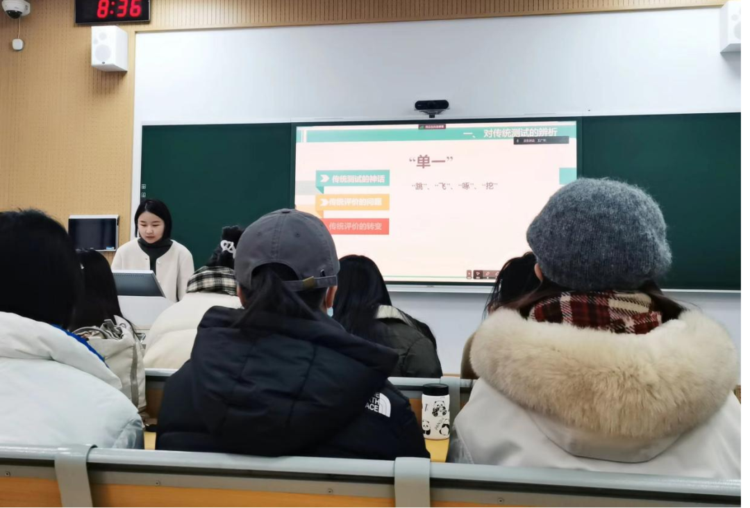 崔窍同学从《怎样评价学生才有效——促进学习的多元化评价策略》一书的书名出发,将为什么多元化评价策略能提高学生的有效学习进行分解,从传统测试辨析、真实性评价、学生评价该何去何从三个部分进行了阐释。在对传统测试的辨析里,通过用小动物们期末考试的例子证明了传统评价的单一性等弊端。从真实性评价标准制定的理论依据及真实性评价的实施策略等对真实性评价进行了分析。就学生评价何去何从这一问题,崔窍同学介绍了本书作者给出的两个方向,即选择适合学生的评价和教师之间形成评价的合力,共同把学生的学习推向新的高度。