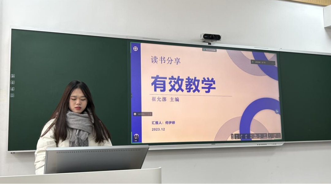 何伊婷同学分享了崔允漷的《有效教学》一书。根据本书的逻辑线索分析了什么是教学——怎样教得有效——怎样教得更好三个方面的内容,循序渐进地诠释了何谓有效教学、教师应如何进行有效教学,并引入了大量的教学实例、反思和随笔,语言通俗易懂,案例真实有趣且可操作性强。