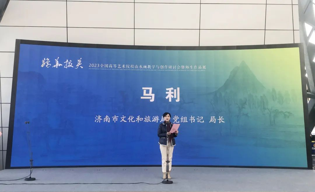 马利局长在致辞中表示,“鹊华掇英”是立足济南独特历史文化而打造的新时代泉城特色学术品牌,以该学术品牌冠名2023全国高等艺术院校山水画教学与创作研讨会暨师生作品展,可谓相得益彰。因此,携手全国各大高等艺术院校和美术创作研究机构,将共同推动泉城文化、齐鲁文化传承创新,助力全国美术创作事业繁荣发展。