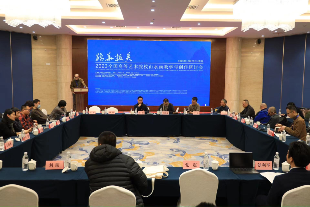 当天,“鹊华掇英——2023全国高等艺术院校山水画教学与创作研讨会”在山东师范大学千佛山校区举行。