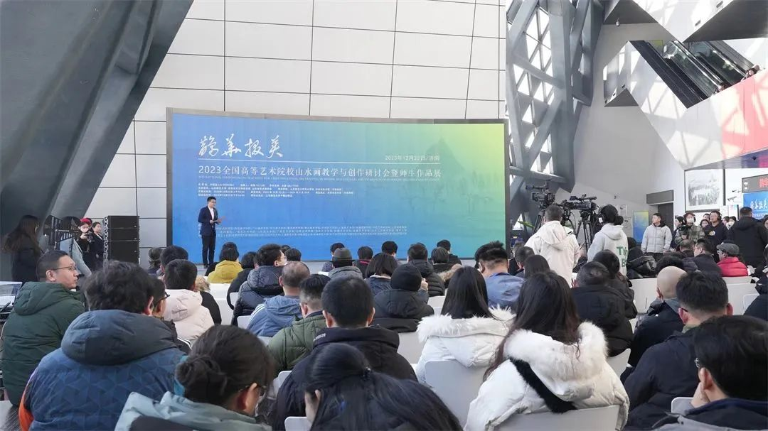 2023年12月23日上午,由山东师范大学、济南市文化和旅游局、山东省美术家协会主办,山东师范大学美术学院、济南市美术馆(济南画院)承办的“鹊华掇英——2023全国高等艺术院校山水画教学与创作研讨会暨师生作品展”在济南市美术馆隆重开幕。来自全国各地的高校师生及专业创作机构的艺术家,齐聚泉城,共襄盛举,共赴一场中国山水画艺术盛宴。