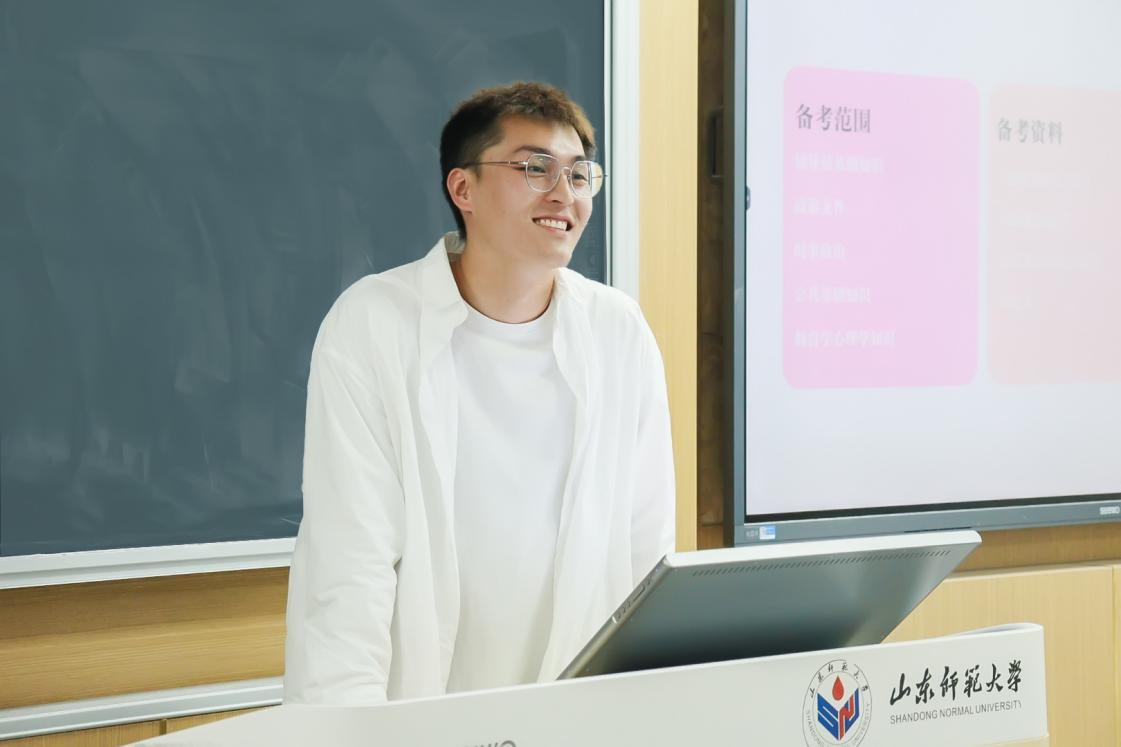 接着,肖文玉简单介绍了自己的工作体验历程,鼓励同学们敢于寻找自己感兴趣的工作。从辅导员笔试,辅导员面试,经验教训以及工作四个方面展开讲解,分享自己的备考经历,详细介绍了笔试和面试的经验教训和流程,其中特别强调同学们一定要坚持学习一种资料,不要走马观花。