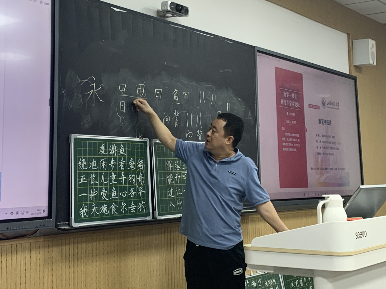 在讲座中,暴学伟老师使用了通俗易懂的语言,让同学们轻松理解了粉笔字的书写要点,字体风格、笔画结构和书写规律,为同学们提供了准确、实用的指导。同学们表示在今后的教学工作中,会更加注重粉笔字的书写,为课堂示范打好基础,成为能写漂漂亮亮中国字的教学能手。
