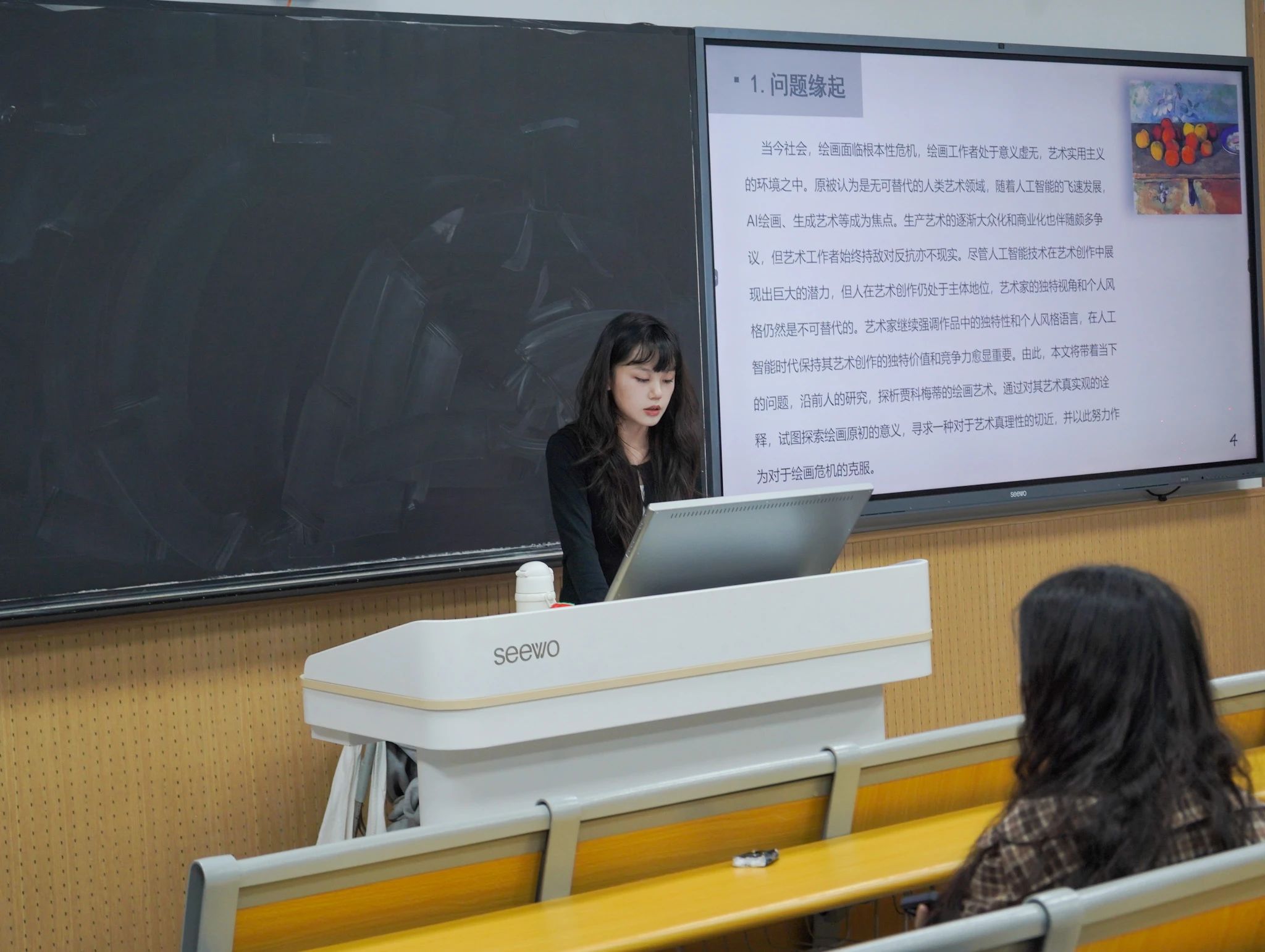 10月17日晚,美术学院于山东师范大学千佛山校区教学二楼2160成功举办“鹊华学术讲坛”讲座第十三期。美术学专业22级硕士生许荷蕊担任主讲人,美术学院部分研究生及本科生到场聆听。
