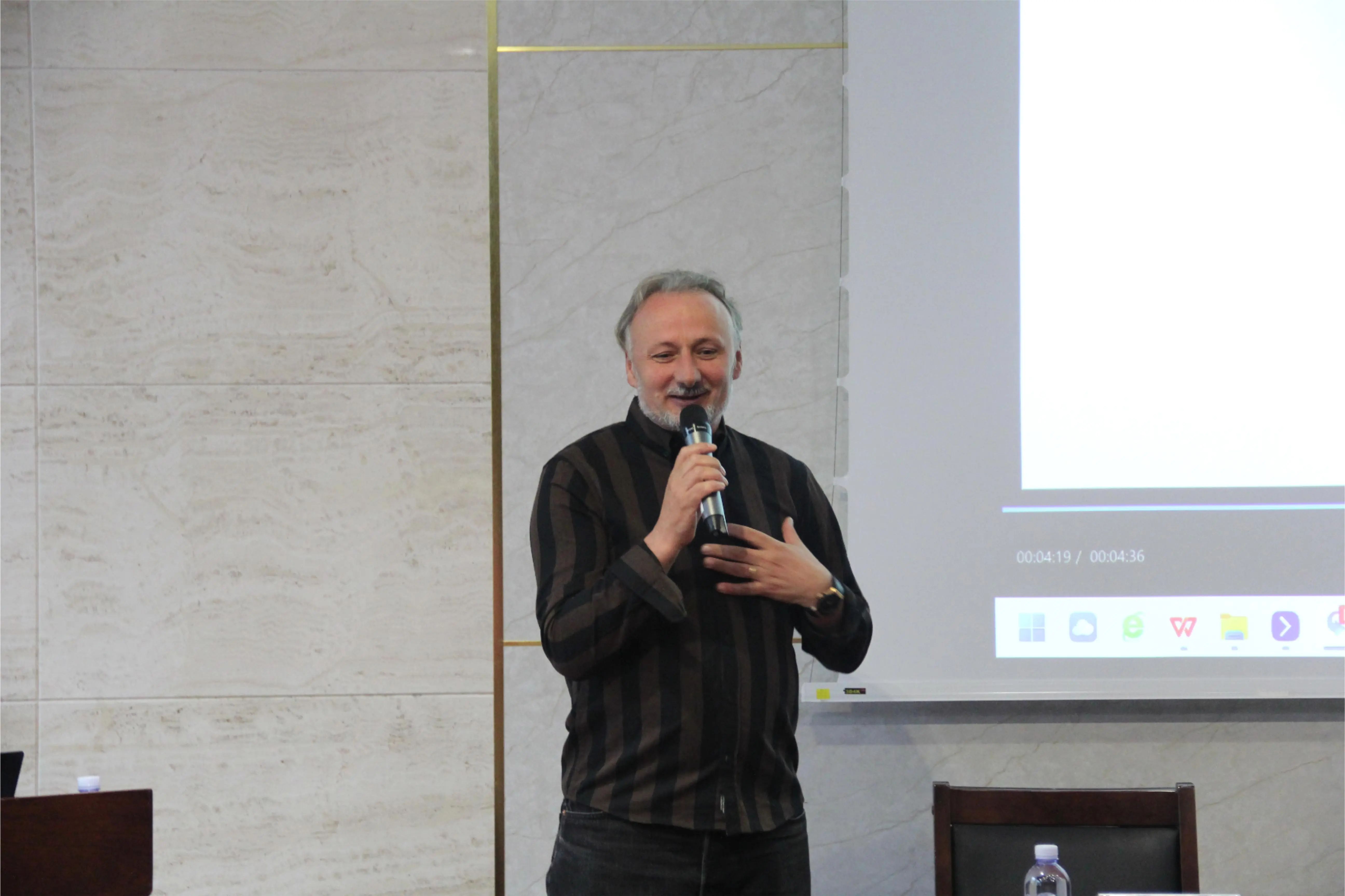 讲座伊始,孙夕恺副院长对两位国际艺术家的到来表示热烈的欢迎,并简要介绍了本次讲座的主题和目的,在全球化的背景下,公共艺术作为连接不同文化和社会的桥梁,正扮演着越来越重要的角色,此次讲座旨在通过两位艺术家的分享,让师生们领略到国际艺术的前沿动态,拓宽艺术视野。本次讲座的特邀嘉宾张望先生对两位艺术家的艺术成就进行了简短的介绍。