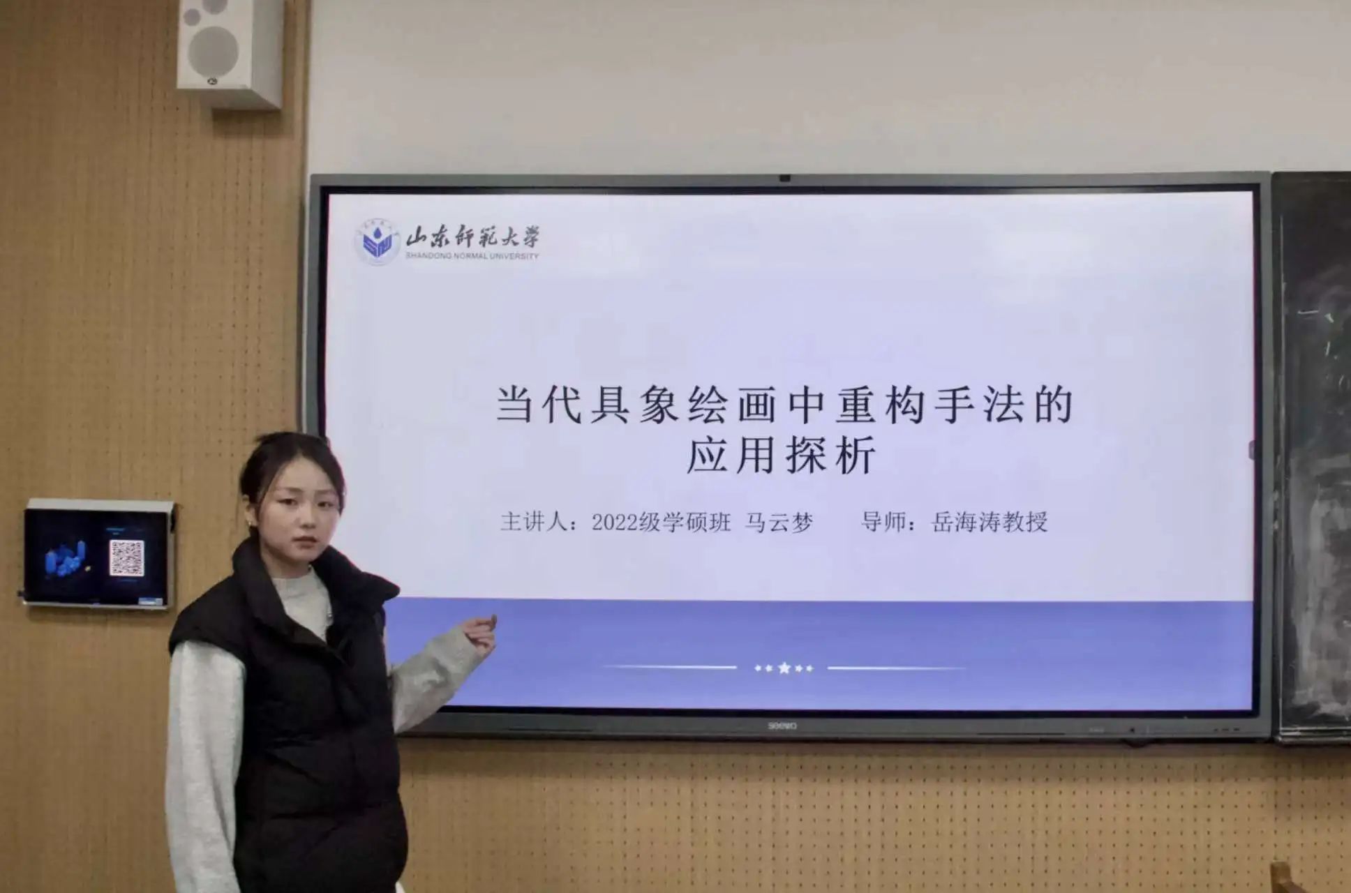 11月7日晚,美术学院于山东师范大学千佛山校区教学二楼2161举办“鹊华学术讲坛”讲座第十九期。美术学专业22级硕士生马云梦担任主讲人,美术学院部分研究生及本科生到场聆听。