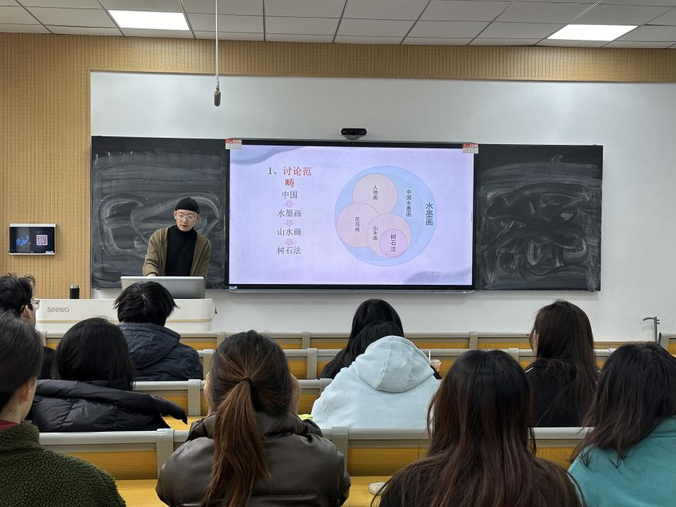 11月4日上午,为助力新教师们迅速适应教育岗位、提升教学技能,美术学院于千佛山校区二号教学楼2248教室开展了第四届“青师启航”1+1公开课活动。本次活动由青年教师于海龙主讲,讲授课程为山水画写生,刘明波教授、范萍萍老师担任导师团成员,学院副院长吴磊和部分青年教师现场观摩。