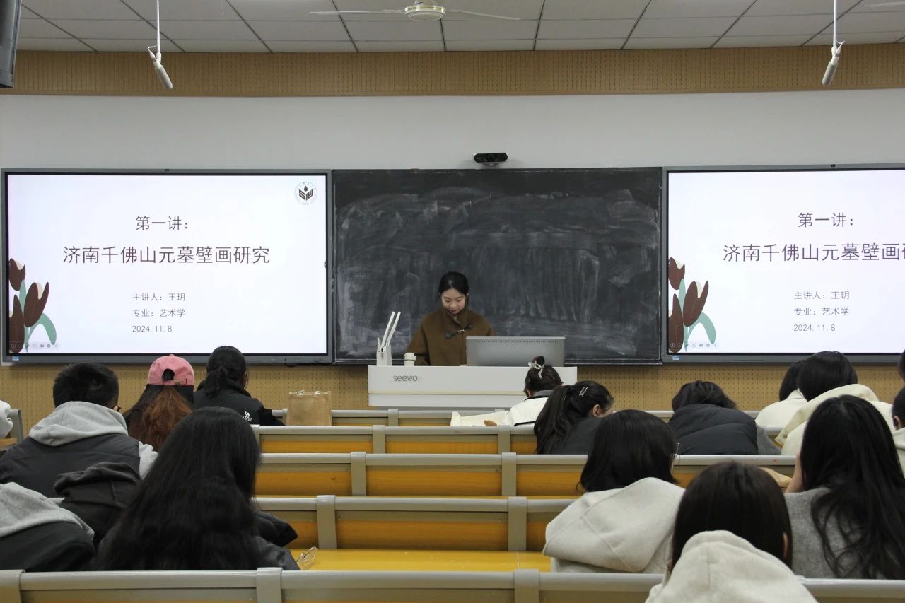 11月8日晚,美术学院于山东师范大学千佛山校区教学二楼2161成功举办2024届“鹊华学术讲坛”学术讲座第二十期。2022级艺术学硕士研究生王玥担任主讲人,美术学院部分研究生到场聆听。