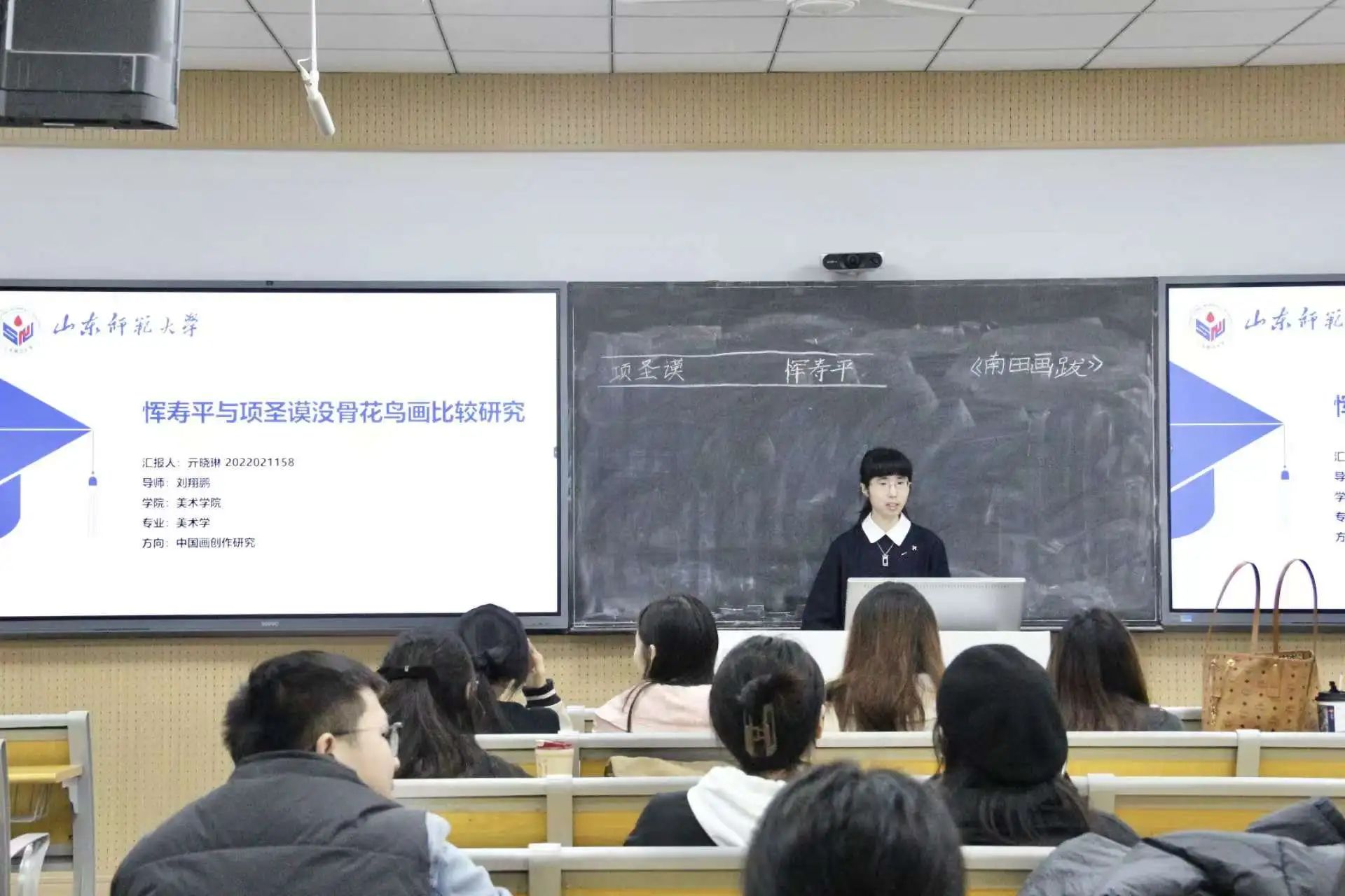 11月21日晚,美术学院于山东师范大学千佛山校区教学二楼2161举办2024届“鹊华学术讲坛”学术讲座第二十三期。2022级美术学硕士研究生亓晓琳担任主讲人,美术学院部分研究生到场聆听。