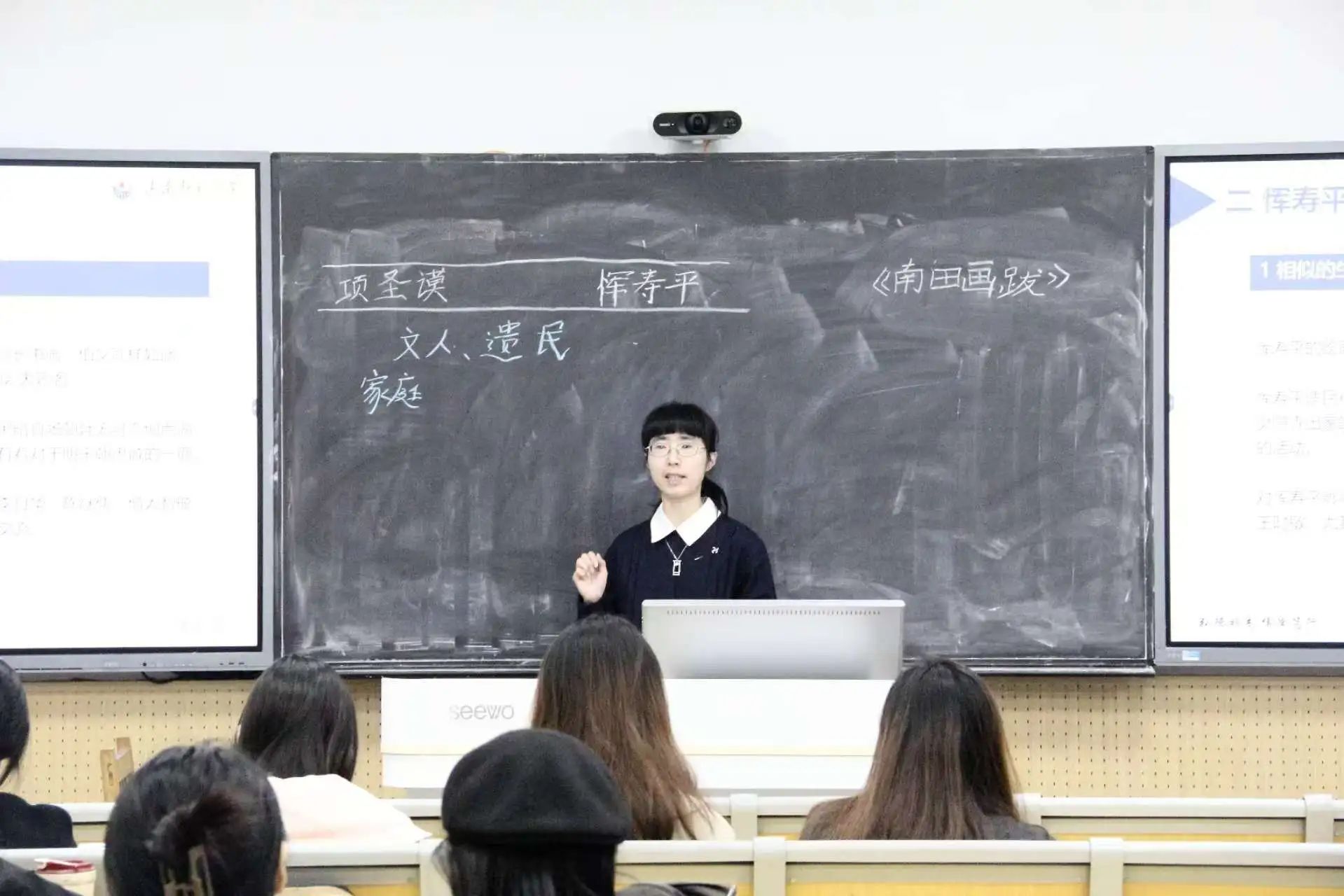 亓晓琳还为大家分享了《南田画跋》读书报告。她简要介绍了作者信息与内容提要,从逸品观念、艺术精神、笔墨技法、师古人与写生以及其他部分五个方面进行分析。最后通过总结恽寿平画跋所体现的艺术价值结合专家观点,对古代文化是如何影响艺术创作得出结论,进而通过互动拓展延伸。