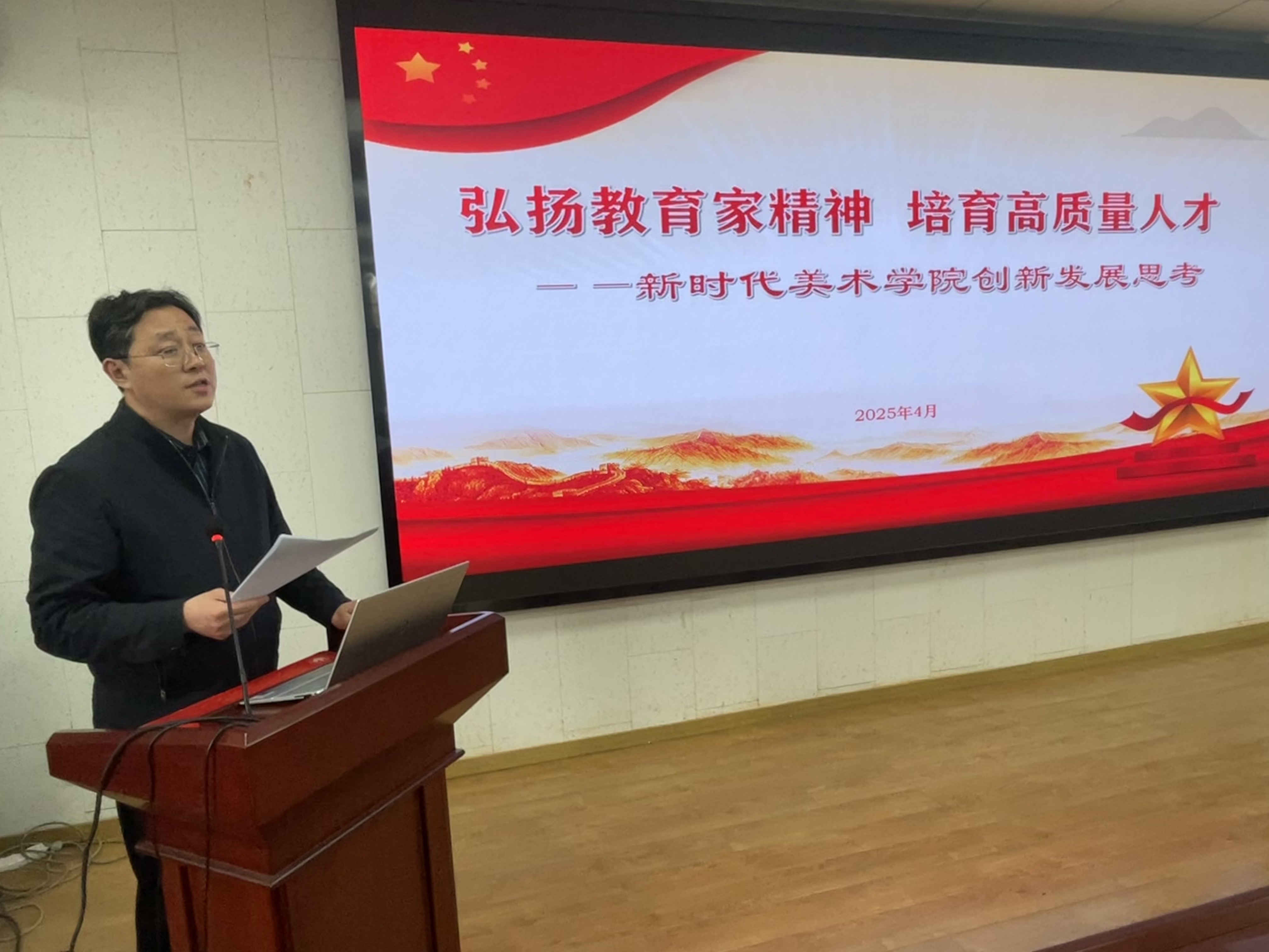 根据学校工作部署,4月3日下午,美术学院弘扬践行教育家精神系列活动启动。党委书记崔勇在千佛山校区2126报告厅以“弘扬教育家精神,培育高质量人才——新时代美术学院创新发展思考”为题作首场报告,全院教职工参加报告会。