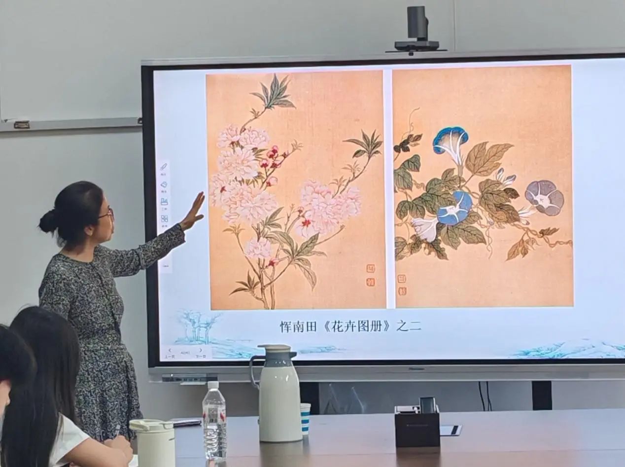 技法解析环节,张卉梳理了从宋代“十八皴”体系到清代审美转向笔墨的发展脉络,展现了不同时代、不同地域的技法特色与革新轨迹。在人物画与花鸟画部分,她阐释了“以形写神”的创作准则,以及“托物言志”的精神表达,揭示传统绘画借物抒情、寄意于象的艺术特质。