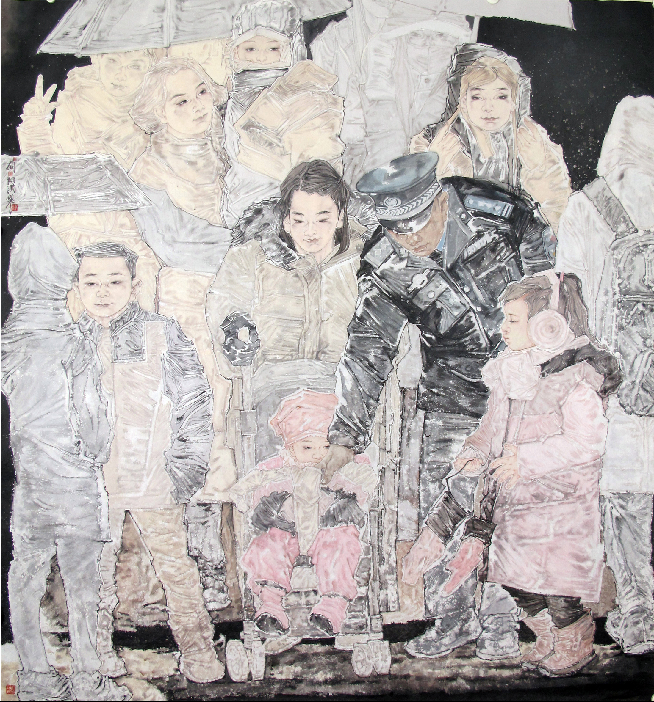 刘翔鹏:警民一家亲180cm200cm-2022年作-中国画