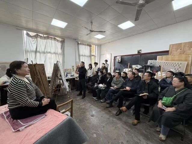 为全面掌握本学期教学运行状况,持续提升教学质量,11月12日,美术学院组织开展了一场系统、深入的期中教学检查。本次检查通过领导督导查听课、公开课观摩、师生座谈会及公开课研讨四环节联动,对学院教学工作进行了全面审视与交流。学院党委书记崔勇、教学副院长吴磊、学术副院长孟哲,学校教学督导丁翠红,院级教学督导王海燕、李荣智、刘斐等全程参加了系列活动。