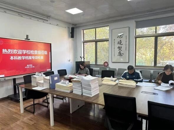检查工作在教学单位已完成自查的基础上进行。检查组三位专家通过详细查阅各类教学材料,与学院进行了深入交流。专家们首先对美术学院教学档案的总体质量给予了肯定,认为材料收集较为齐全,管理有序,并对学院的教学工作及展现出的专业特色和扎实作风表示了赞赏。检查过程中,专家们还特别挑选出部分记录详实、规范严谨的档案作为典型范例,供学院参考借鉴。