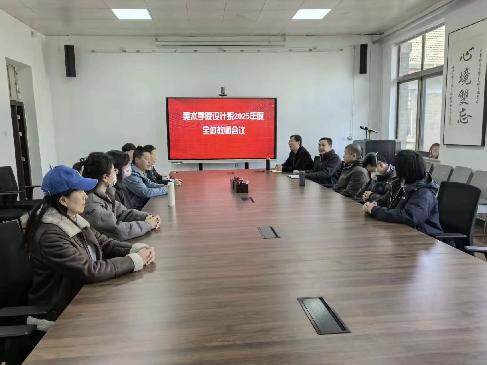 11月23日,新成立的书法系开展首次全体教师教研活动。系副主任张目达主持会议,全系教师围绕书法系发展路径、招生计划及教学大纲的审阅与修改等问题展开深入讨论,重点探讨了如何依据教师教学特长优化课程安排、在课程设置中凸显师范特色、平衡专业性与师范性,以及为学生制定长期发展规划等关键议题。