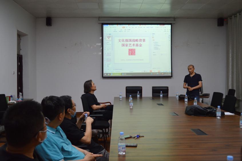 会议伊始,聂劲权教授结合“文化强国战略背景国家艺术基金”项目展开讲解,他首先阐述了国家艺术基金在建设文化强国战略中具有很高的价值意义,对增强国家文化软实力有很大的促进作用。聂劲权教授指出,国家艺术基金最根本的出发点就是文化自信,他对文化自信这一切入点做出了深刻思考,对一个民族发展自身文化而言,文化自信起着重要作用,应当让中国的文化推陈出新,傲然屹立于世。
