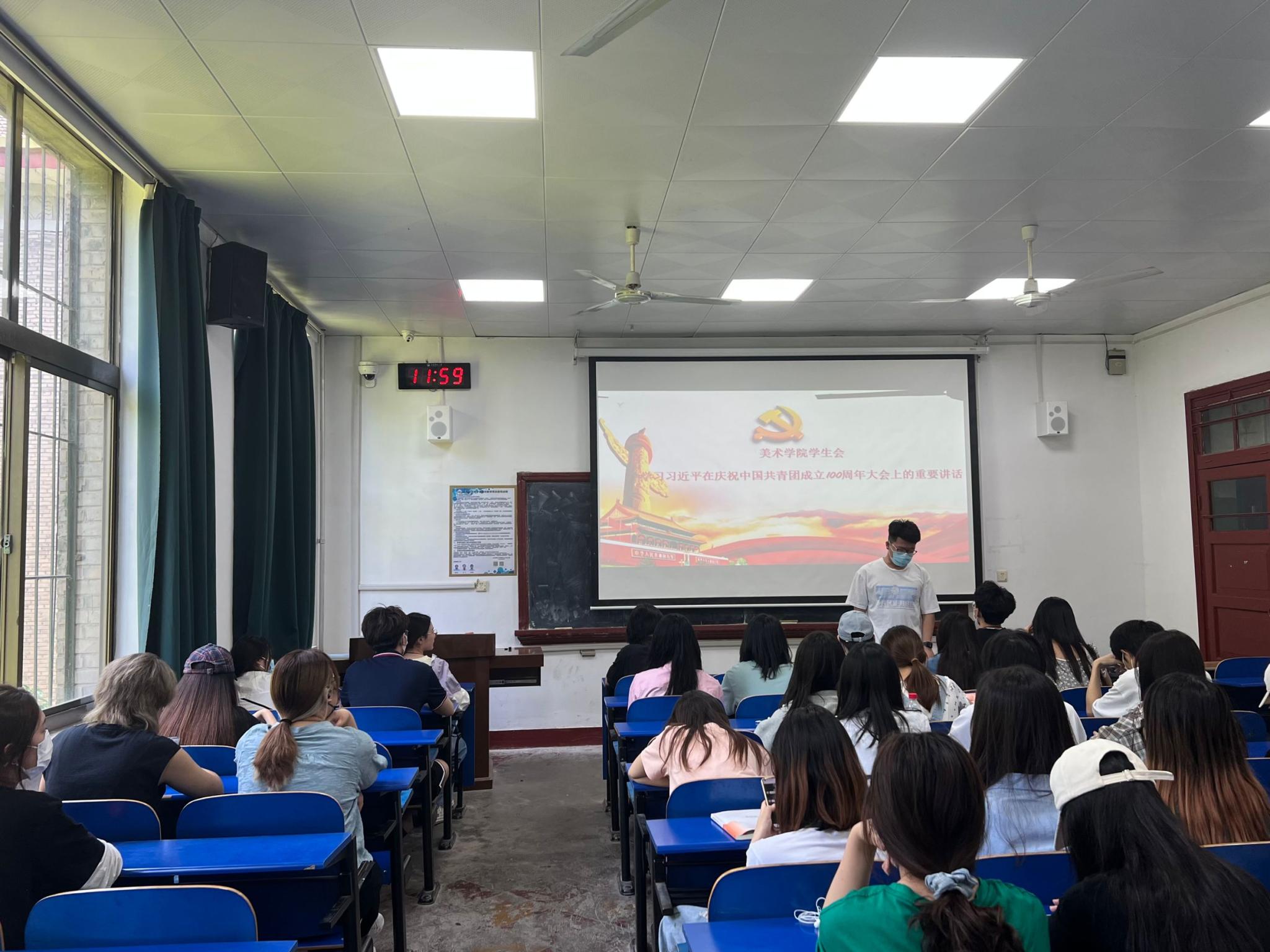 美术学院团委委员、团干部、学院学生会学习观看了庆祝中国共产主义青年团100周年大会直播。在大会直播结束后,团学代表进行了认真学习和座谈交流,并分享了自己的心得体会。