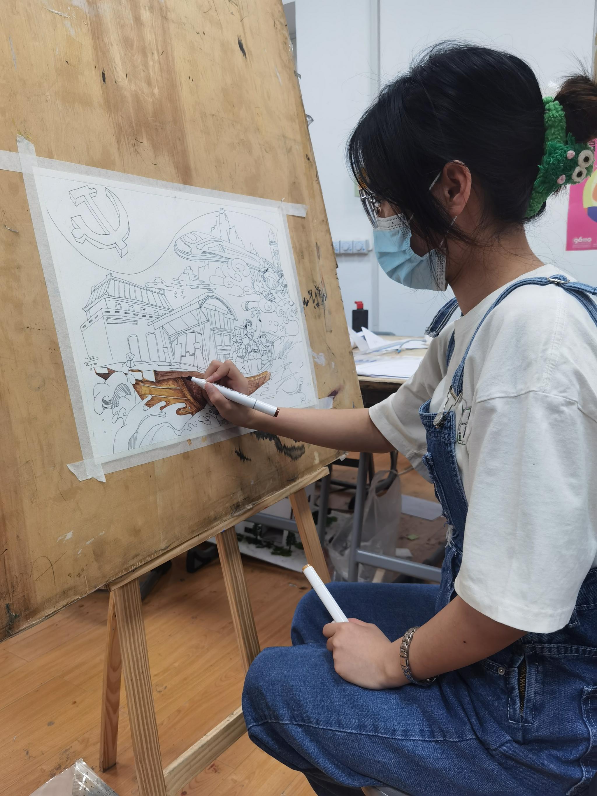线上学习,各团支部学习回顾了中国共产党领导的广大青年在革命、建设、改革不同历史时期接续奋斗、建功立业的感人故事;重温了五四运动时期青年学子为救亡图存不屈不挠的奋斗历程,在学习中深切体悟中国青年作为实现中华民族伟大复兴先锋力量的责任感和使命感。结合线上学习,各支部结合自身专业创作完成了“党领导下的中国青年运动史”主题板报。板报用五彩斑斓的画笔和朴实生动的文字描绘共青团宏伟的历史蓝图,讲述共青团的生动故事,展示共青团的百年光辉,字里行间洋溢着对共青团的无比热爱之情。