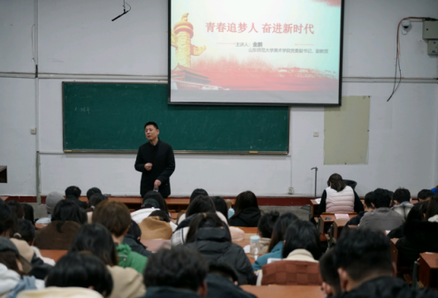 3月2日下午,美术学院于千佛山校区教学二楼2214举办与信仰对话之“青春追梦人,奋进新时代”报告会,学院党委副书记金鹏主讲,2020级辅导员张丹丹主持,2020级美术学院学生到场聆听。