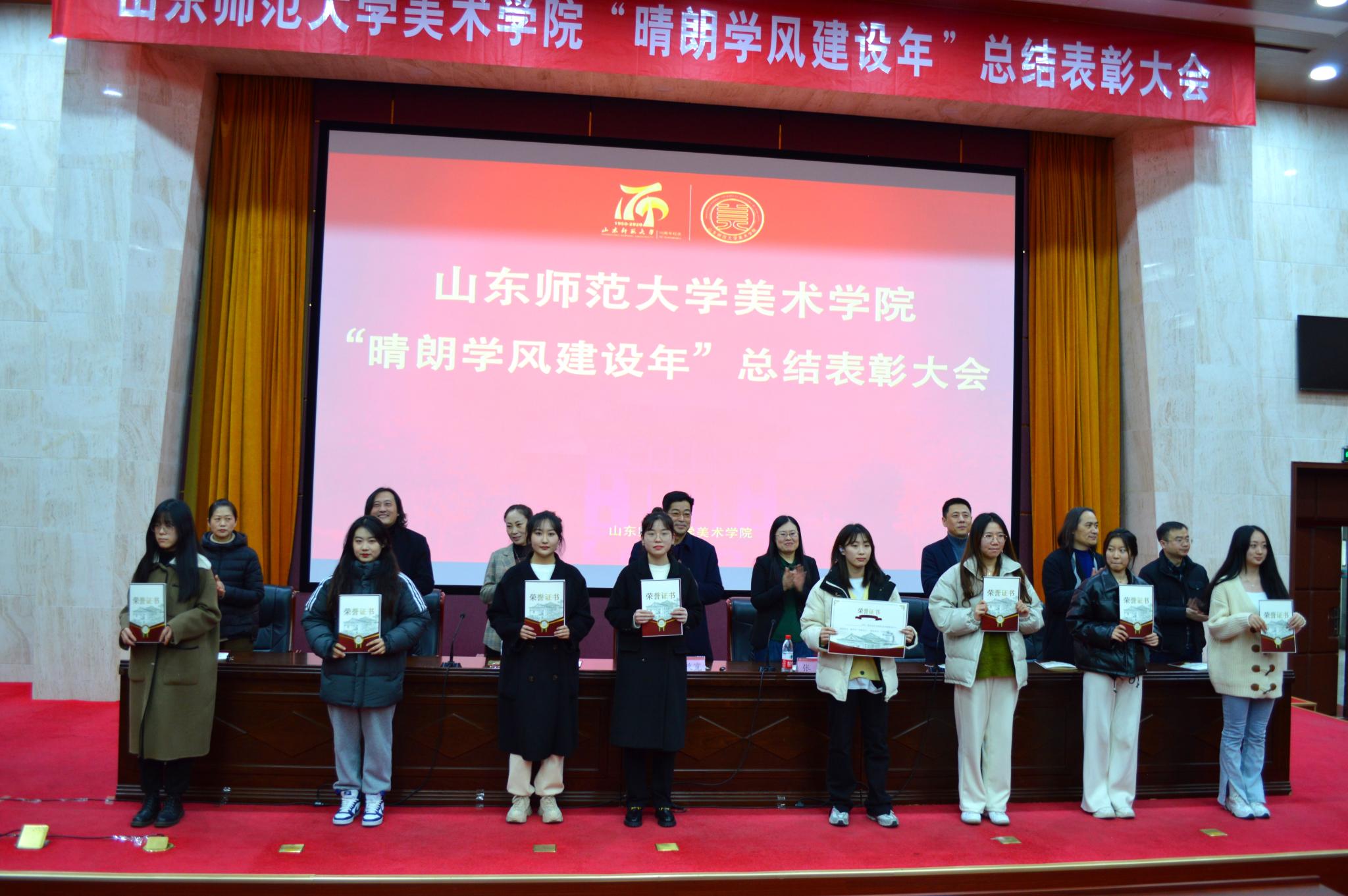 12月23日下午,美术学院于千佛山校区教学三楼报告厅举办“晴朗学风建设年”总结表彰大会。学校研究生工作部部长李效宽、学生工作部副部长史彩虹、学院党委书记张慧、副书记金鹏、副院长刘东峰、孙夕恺、教师代表李民、董龙昌到会为获奖学生颁奖,会议由学院团委书记张丹丹主持。
