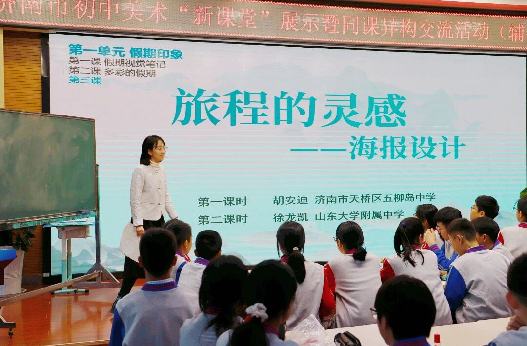 天桥区五柳岛中学教师胡安迪、山东大学附属中学教师徐龙凯基于湘美版教材,从学生真实生活经验出发,展示了扎实的课堂驾驭能力与情境化教学设计