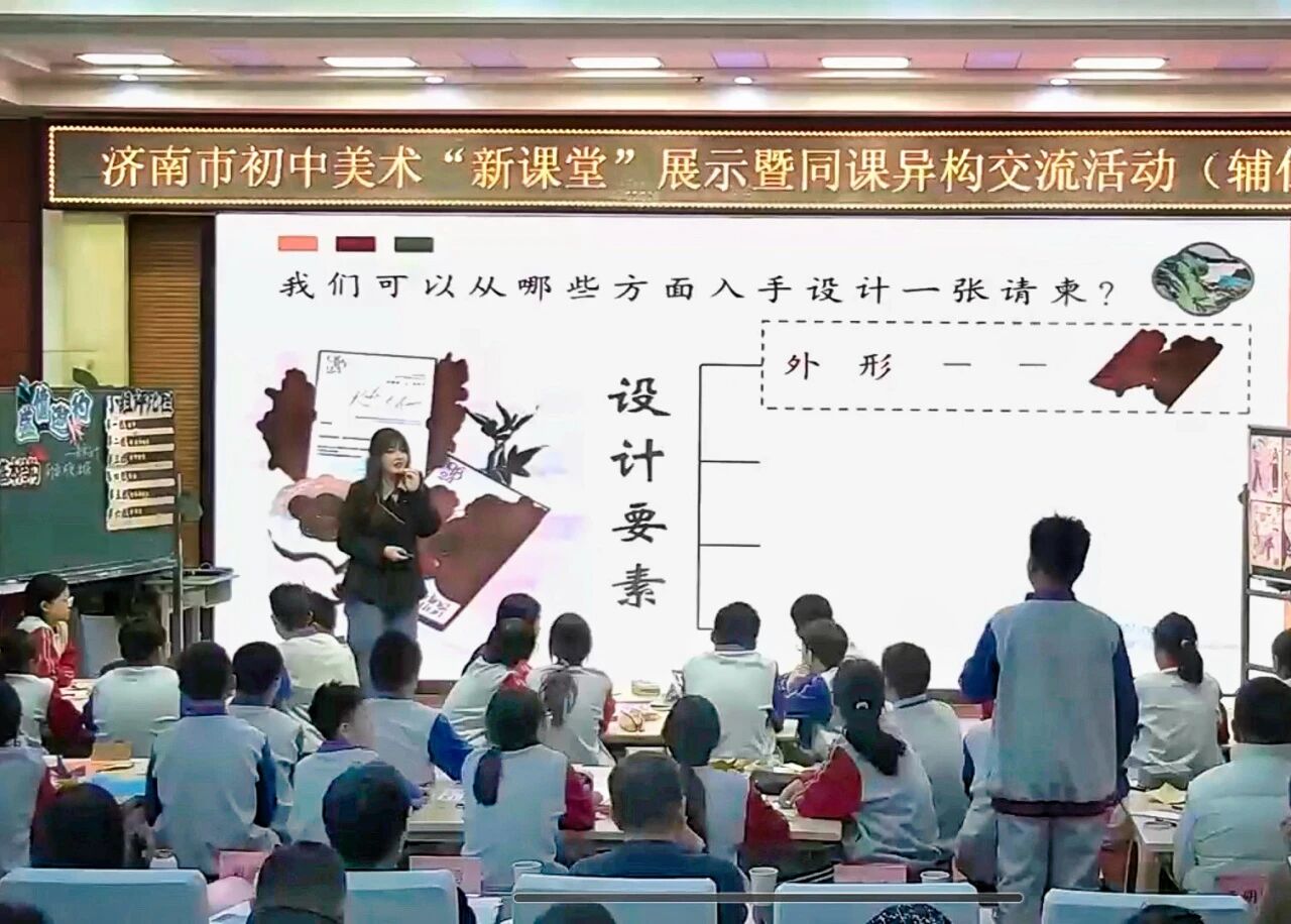 1月7日,首场教学展示围绕鲁教版七年级上册第三单元展开。山东师范大学研究生张晶雨、田然、孙梦晴分别以“校园艺术节宣传海报设计”“文化展览请柬制作”“主题展区模型搭建”为任务驱动,在教学过程中融入人工智能辅助设计、环保材料应用与地域文化阐释,体现技术整合与人文关怀并重的教学导向。