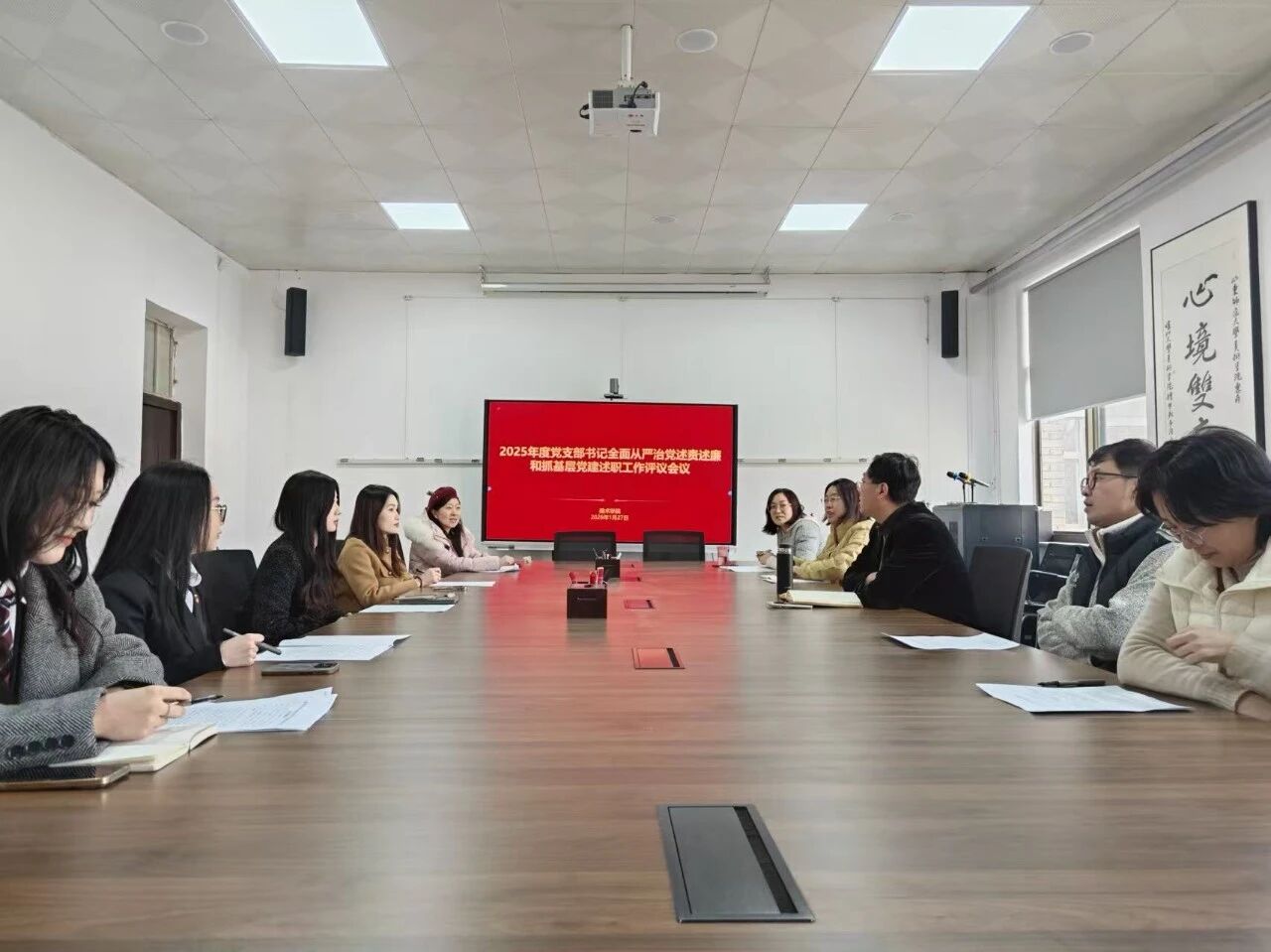 述职结束后,参会人员对各党支部2025年度党建工作进行民主评议。
