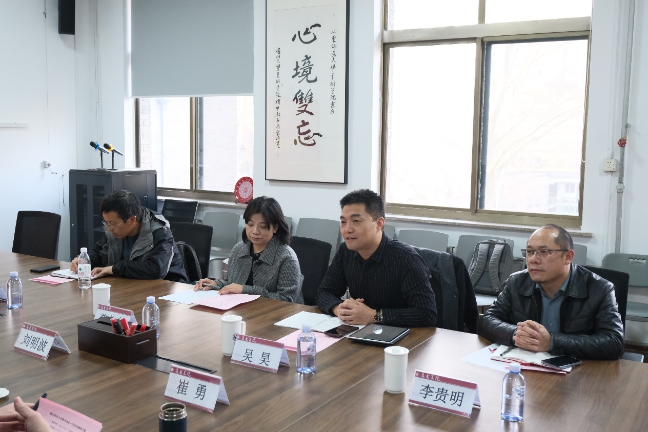 座谈会上,崔勇代表学院对西北师范大学美术学院客人一行表示热烈欢迎,介绍了学院党建工作的基本思路和具体做法,重点围绕党建引领高质量发展的实施路径进行了解读。刘明波介绍了学院学科学位点建设情况,他指出,学院立足齐鲁文化沃土,形成以美术学、设计学为核心的学科体系,今年新增书法学专业并获批招生资格,学科平台与人才培养体系持续完善。学院高度重视与兄弟院校交流合作,期待以此次座谈为契机,搭建长效合作机制,实现优势互补、协同发展。