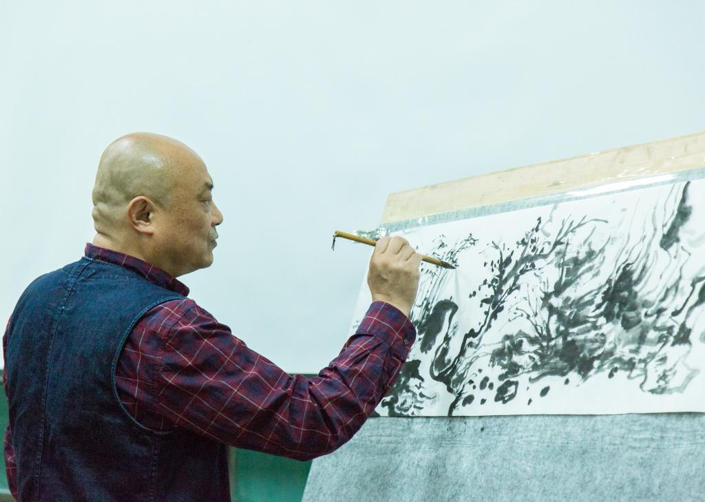 ,边画边讲解,让在场师生深入了解了《中国画的气质》,了解到数码影
