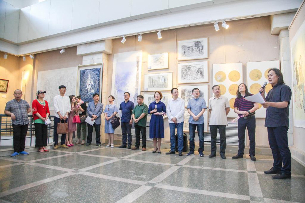 开幕展伊始,由主持人介绍出席本次毕业展的领导与老师,并对此次毕业展进行简短的介绍。本次展览由全体13级国画专业毕业生参与,作品形式多种多样,包括工笔、水墨写意、篆刻治印等作品形式、题材多样、内容丰富。作品中展现出了这一代大学生的精神面貌与艺术创作状态,不仅有同学们的努力付出还倾入了指导教师的心血,展现了山东师范大学美术学院的教学特色。