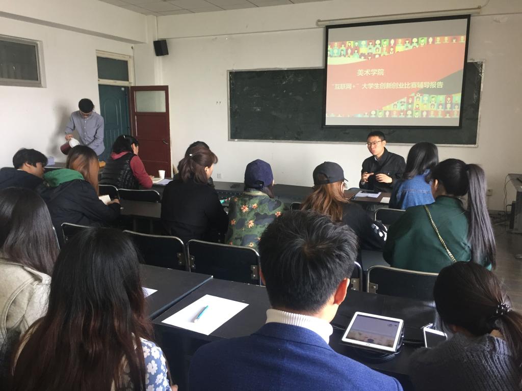 为激发大学生创新创业热情,增强创新精神、创业意识,提高学生的创新创业能力, 4月12日,美术学院在田家炳楼4629教室组织了大学生创新创业培训会,学院党委副书记赵巍结合指导大学生创新创业经验为项目负责人和部分同学做了专题辅导。