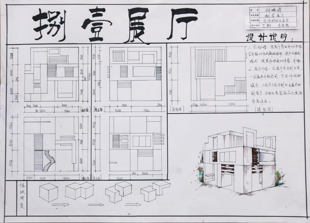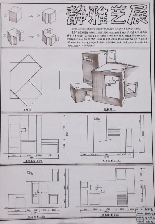 此次空间构成与造型作业展由李荣智主持,共展出优秀作品51件,作品分为展板展示和实物展示两个部分。在李荣智、艾翔老师的指导下,同学们运用独特的视角,展开独具匠心的构思与创意,发挥设计专业元素,从多种方式展现出建筑作品的设计实用美感。同学们在PVC发泡板的基础上,把纸片、木棒、玻璃等材料运用在设计中,并配以多方位、多角度的平面结构图与作品介绍,使建筑模型得以更加丰富、全面的展现。其中《一米阳光》、《如目方开》、《润生》等作品创意十足,前来参观的众多领导、师生对于作品的质量和水平均给予高度评价。此次设计作业展,展示了美院独特的专业特色和学生的个人风采,吸引众多同学前来观看,现场一片称赞之声。