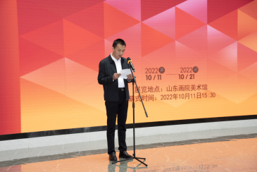 许双庆在开幕式致辞中指出,山东师范大学美术学院始终贯彻落实党的美育方针,坚持立德树人、铸魂育人,将以美育人、以美化人融入到人才培养全过程,培养具有高尚情操、美好心灵、审美涵养的社会主义建设者和接班人。作为山东省内唯一拥有美术学本、硕、博完整培养体系和博士后流动站的高等教育美育重地,山东师范大学美术学院始终坚守中华文化立场,从中华文化宝库中萃取精华、汲取能量,以弘扬优秀的齐鲁文化为己任,传承伟大的革命精神,展示当代生活的蓬勃气象,推出了一系列文质兼美、格调高雅,展现民族思想水平、艺术水平、创造能力、综合实力的优秀作品。这是推动中华优秀传统文化创造性转化、创新性发展的积极探索,也是以人民为中心,奋进新征程建功新时代,以优异的成绩迎接党的二十大胜利召开的生动实践。山东省美术家协会主席、济南市文联主席张望、山东画院院长孔维克先后致辞。致辞中,对山东师范大学美术学院雄厚扎实的学术底蕴、浪漫深沉的艺术氛围以及求实创新的教育教学传统表示赞誉,对近年来取得的成绩表示祝贺。