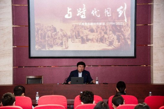 接下来,孔维克以“与时代同行——孔维克主题创作解读(1984-2022)”为题,给到场师生作了精彩报告。