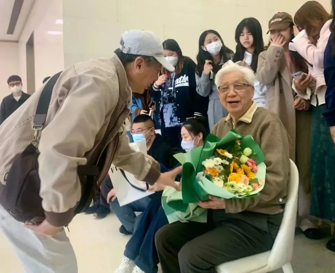 全山石先生得知山东的学子远道而来,专门接待了山东师范大学美术学院的师生,给他们介绍了创办艺术中心的初心、历程和宗旨。他强调油画看原作的重要性,艺术中心提供了这么一个平台,就是让年轻的画家不出国门就能在家门口看到西方油画的经典原作,直观地领略油画发展的脉络。师生们对全老师的谆谆教导和殷殷期盼表示感谢,刘青砚教授代表全体师生给全山石先生敬献鲜花。全山石先生与全体师生合影留念。