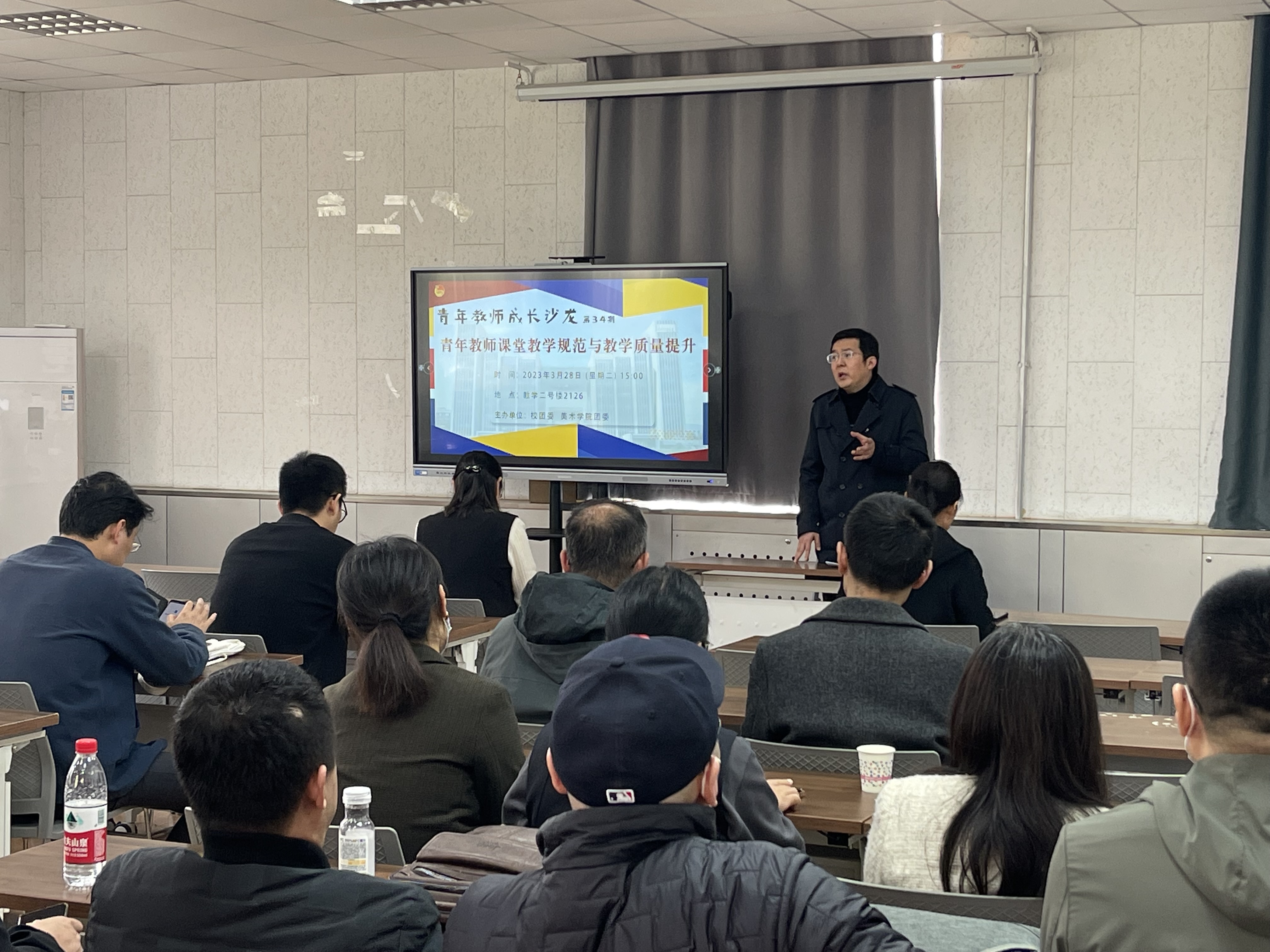 3月28日下午,校团委、美术学院团委于千佛山校区教学二号楼2126多功能教室举办第34期——“青年教师课堂教学规范与教育质量提升”青年教师成长沙龙。学院党委书记胡晓明、副院长吴磊、李民以及近十年来新入职的教师参加了沙龙,吴磊主持沙龙活动。