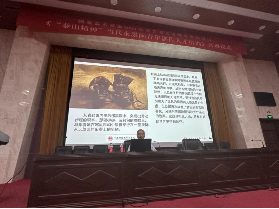 开班仪式上,山东省政协常委、文教委员会副主任王世农发表讲话,把习近平总书记关于文艺工作的重要论述作为项目开班的“第一课”和“必修课”。他表示,国家艺术基金致力于为推动新时代国家艺术事业的繁荣发展做出积极贡献,希望山师美术学院在国家艺术基金资助项目带动下,培养出更多优秀的当代水墨画青年创作人才,推动泰山精神的传播和交流。