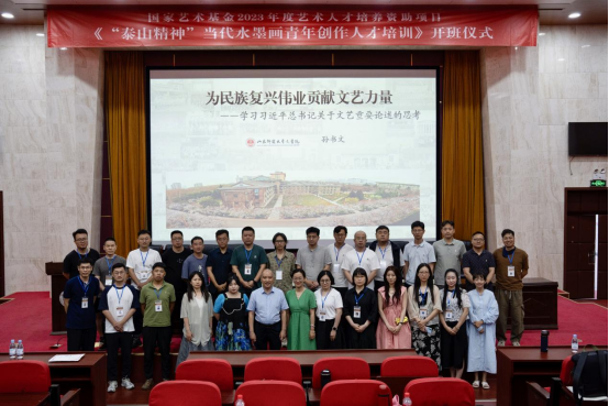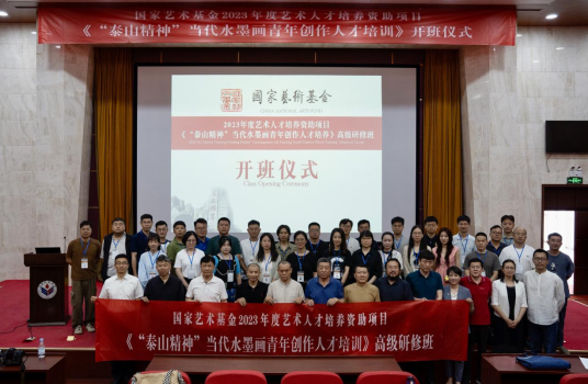 2022年6月20日,由国家艺术基金资助,山东师范大学美术学院主办的“泰山精神---当代水墨画青年创作人才培养”项目在山东师范大学千佛山校区三号楼举行了开班仪式。