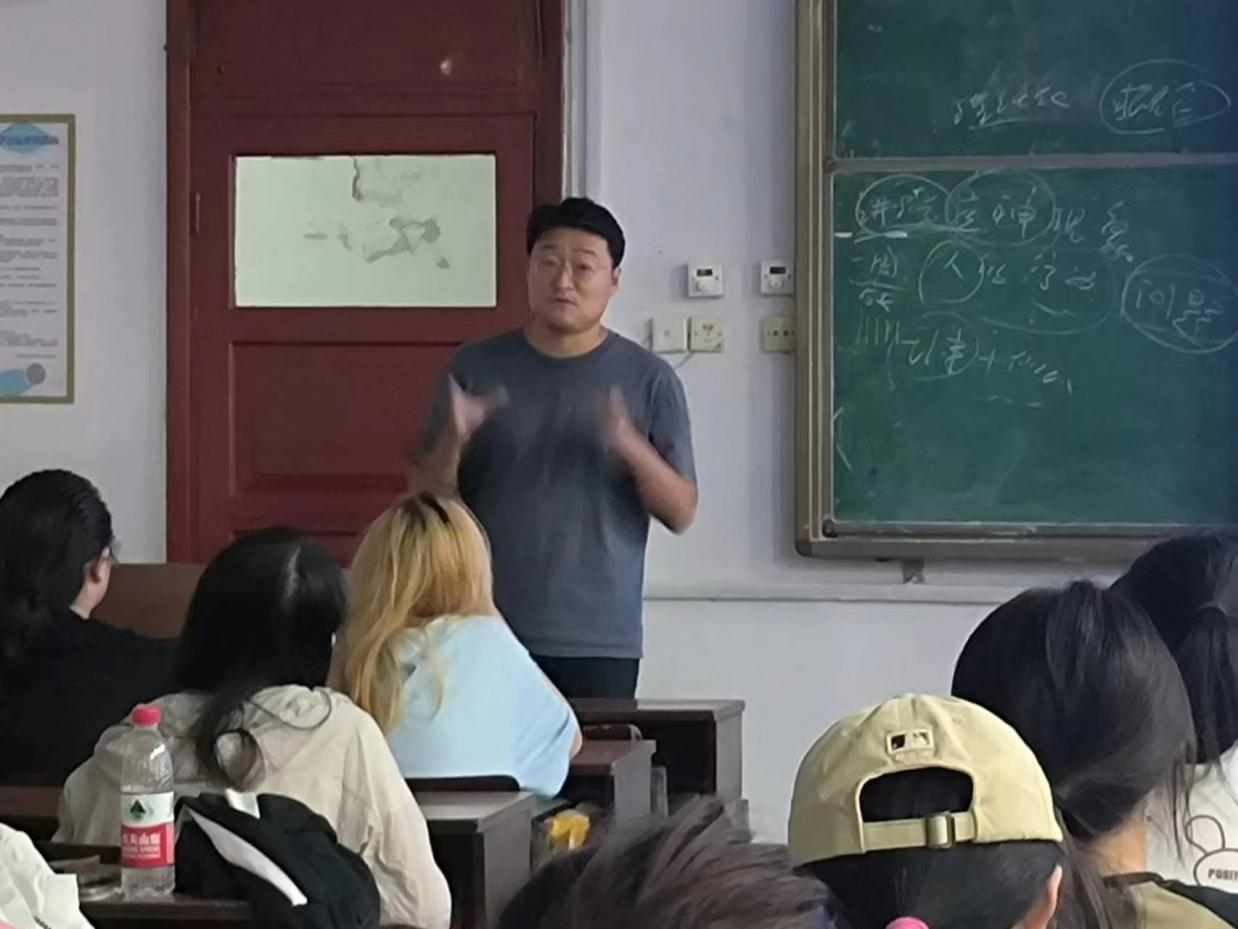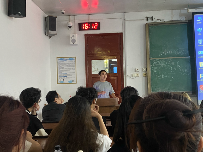 吴磊副院长对同学们选择了美术学国画方向表示了热烈的欢迎且送出了真挚的祝福。通过吴院长的讲述,我们了解到山师美术学院有强大的美术教师队伍,国画专业也取得了丰硕的科研和教研成果,并且培养了很多有影响的名师和画家。山师美院有努力积极向上的师生群体,符合学校“弘德明志、博学笃行”的校训:弘德即德育上的修养,中国画最讲究自身人格与品德的养成;明志即明确个人的志向;博学笃行即王阳明知行合一的人生信条。