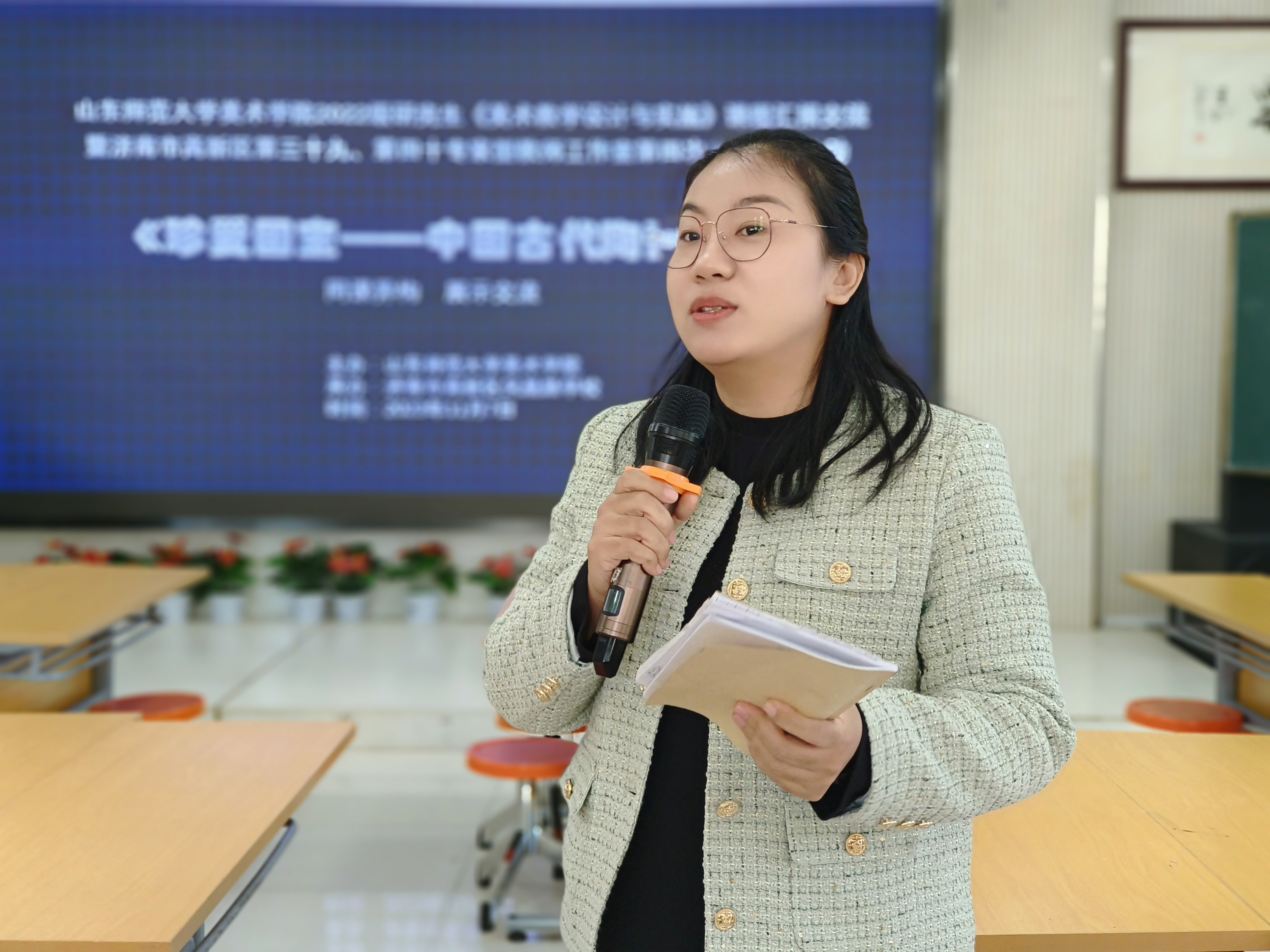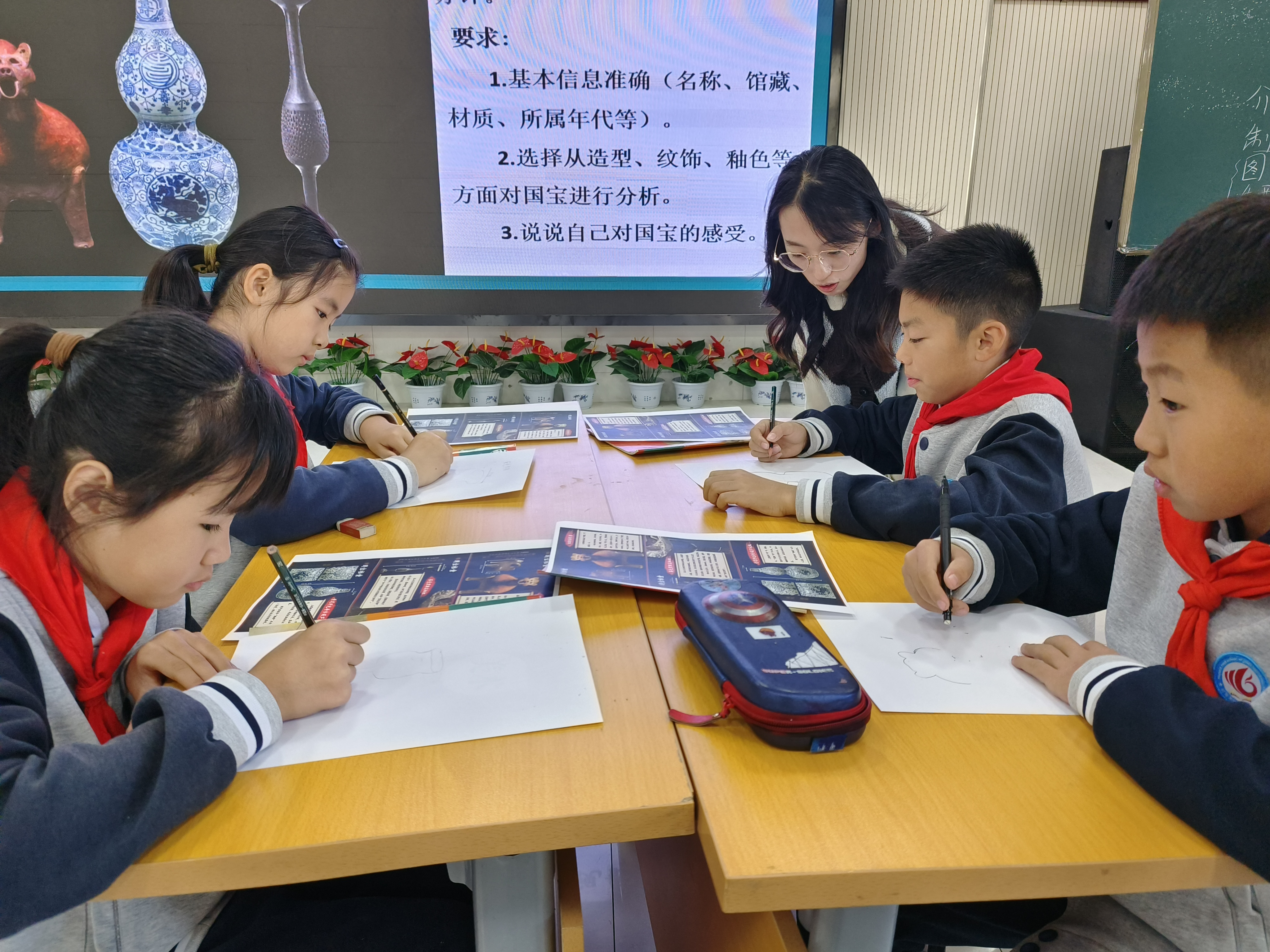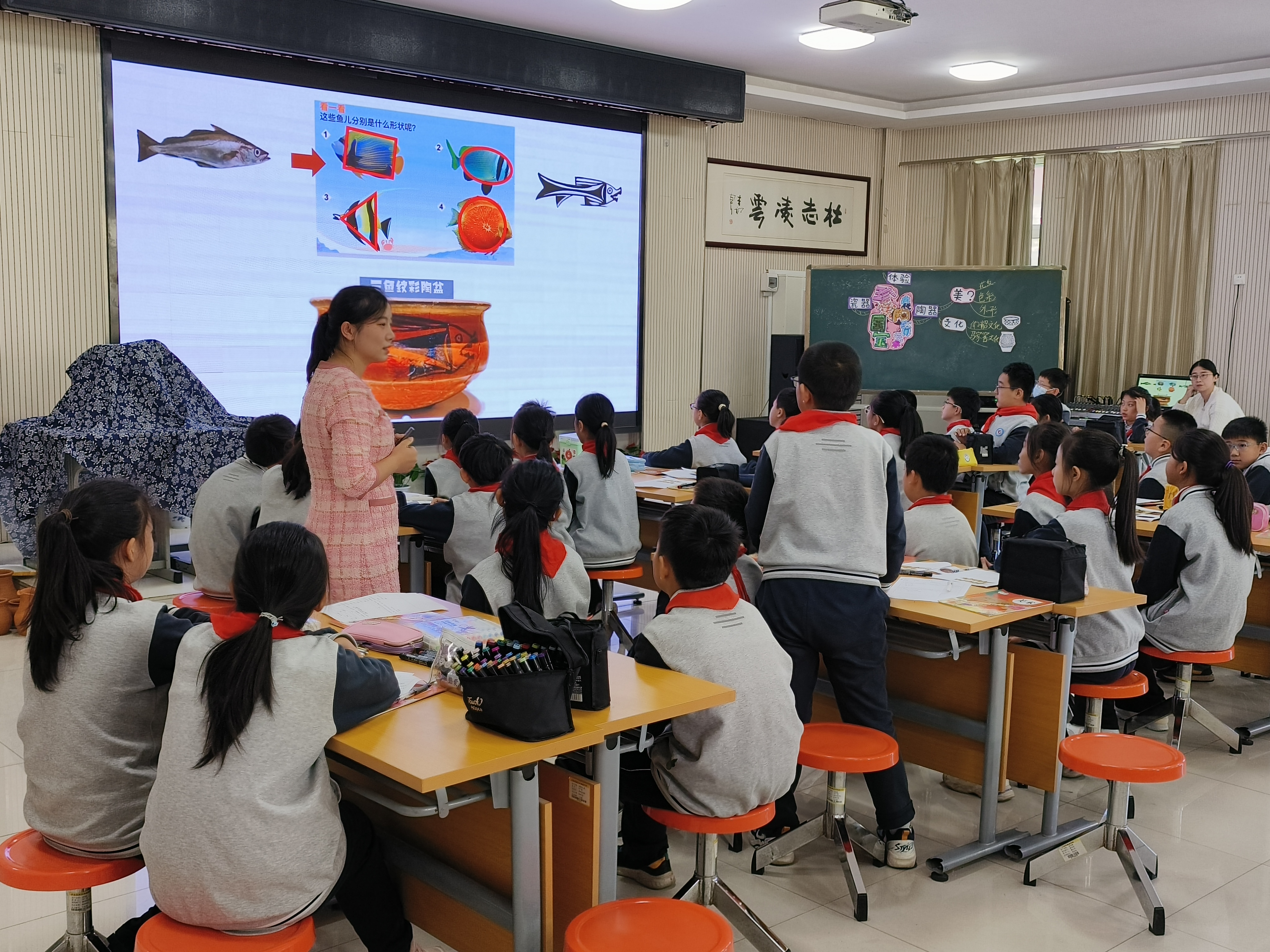 山师美术学院2022级学科教学(美术)专业研究生公瑞敏、刘淑艳及高新区康虹路小学美术教师杨策就人教版五年级第九册第20课《珍爱国宝——古代陶瓷艺术》进行了展示交流。