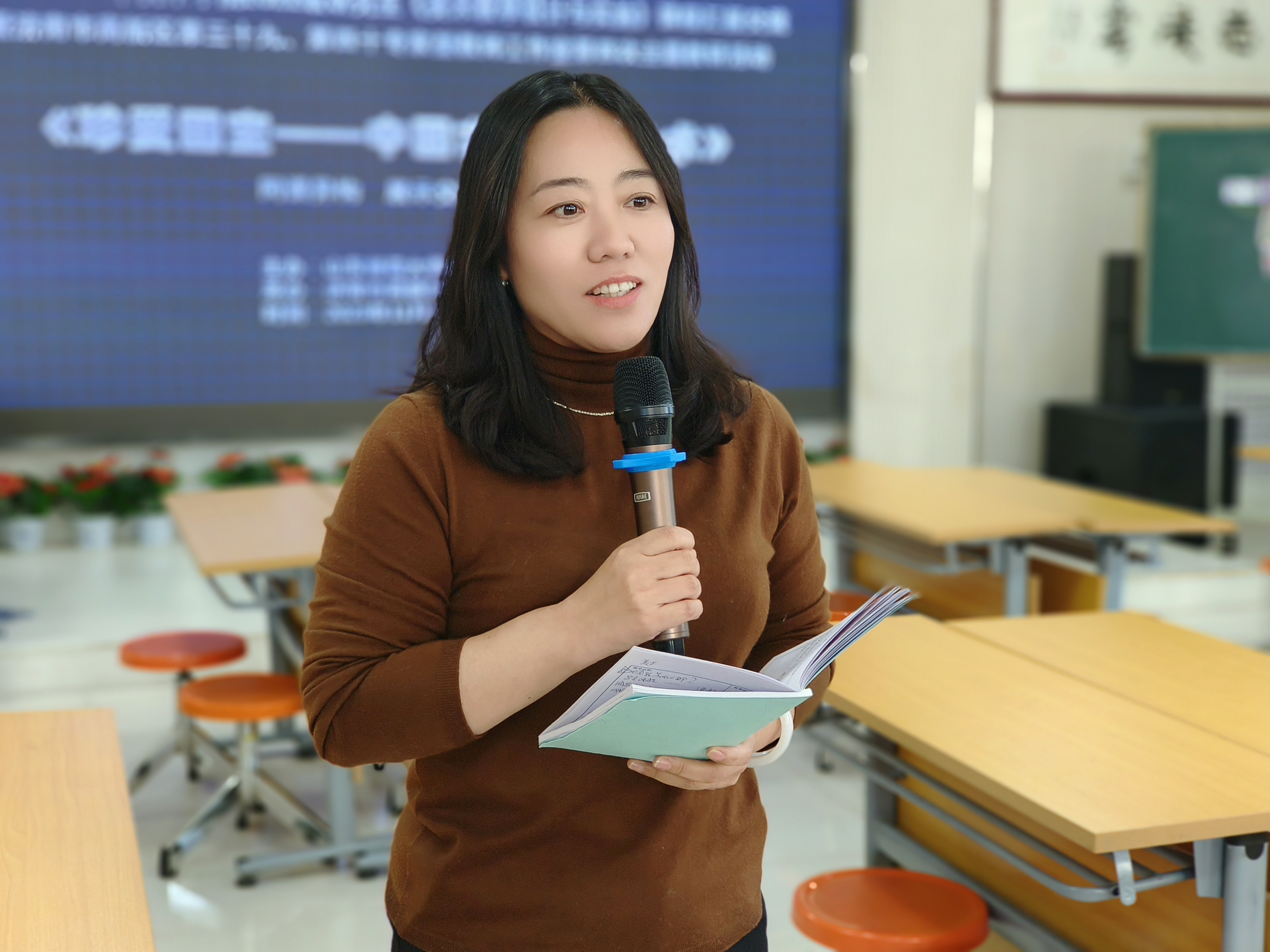 孟庆娟老师指出三节课“和而不同”,“和”体现在三位教师对新课标理念理解到位,都具有情境创设意识,注重教学评的一致性,课堂结构清晰等。“不同”体现在公瑞敏侧重于欣赏方法的提炼和概括,任务与评价量规巧妙结合;刘淑艳善于评价、总结、提炼学生回答,情绪饱满,课堂节奏较好。杨策紧跟大单元教学备课形式,板书以思维导图形式呈现,单元架构明确清晰。
