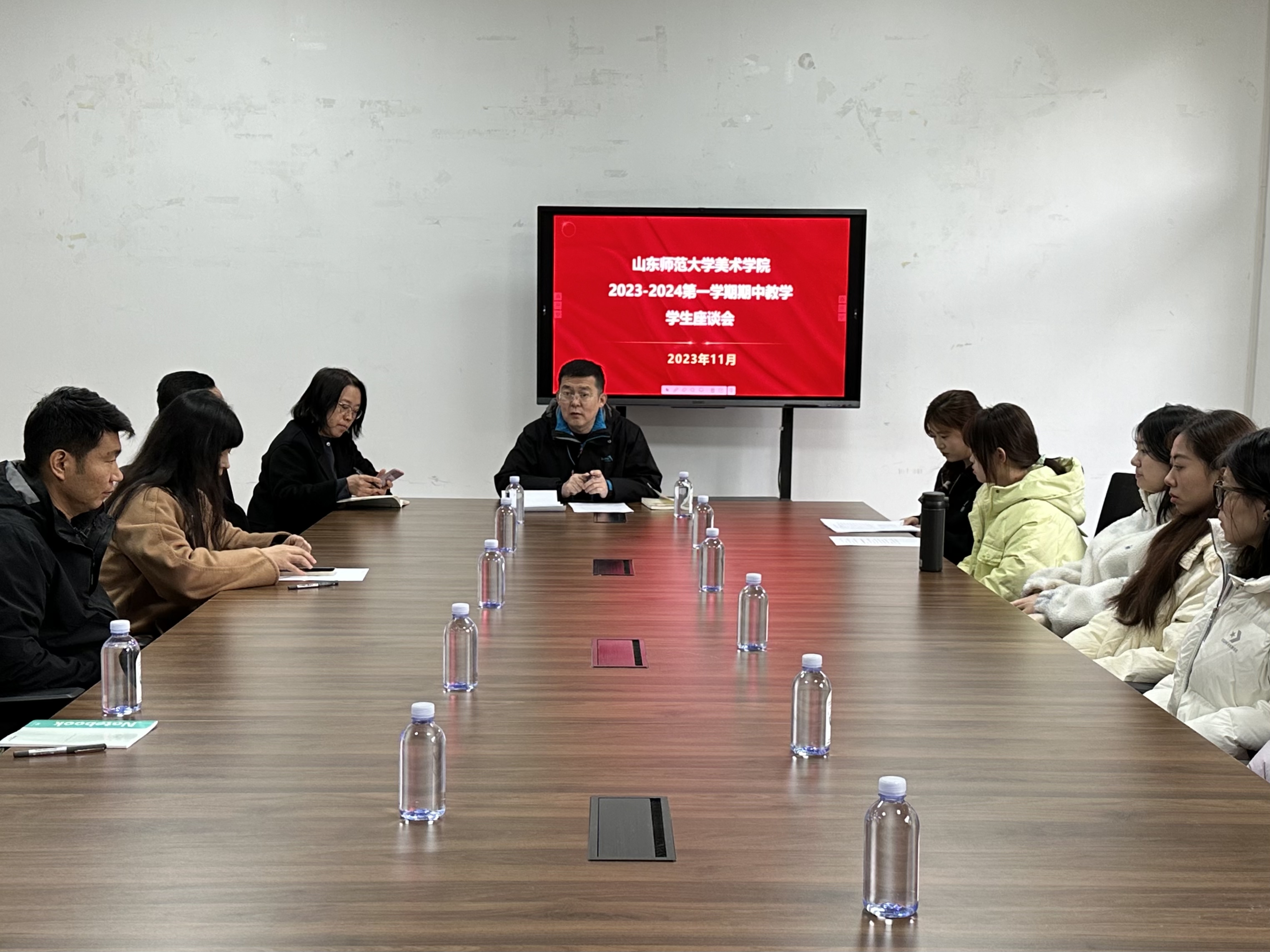 为深入了解学生的学习生活情况,进一步为学生排疑解惑,提升学院教学质量,促进教风学风建设,11月10日,我院于2335会议室召开2023-2024学年第一学期期中教学座谈会。党委副书记葛晓霞,副院长吴磊,设计系主任李荣智,教师王海燕、杨春波、曹新刚、吴国平,团委书记丁彬,2022级辅导员王书艳出席本次会议,各年级学生代表参加座谈会。