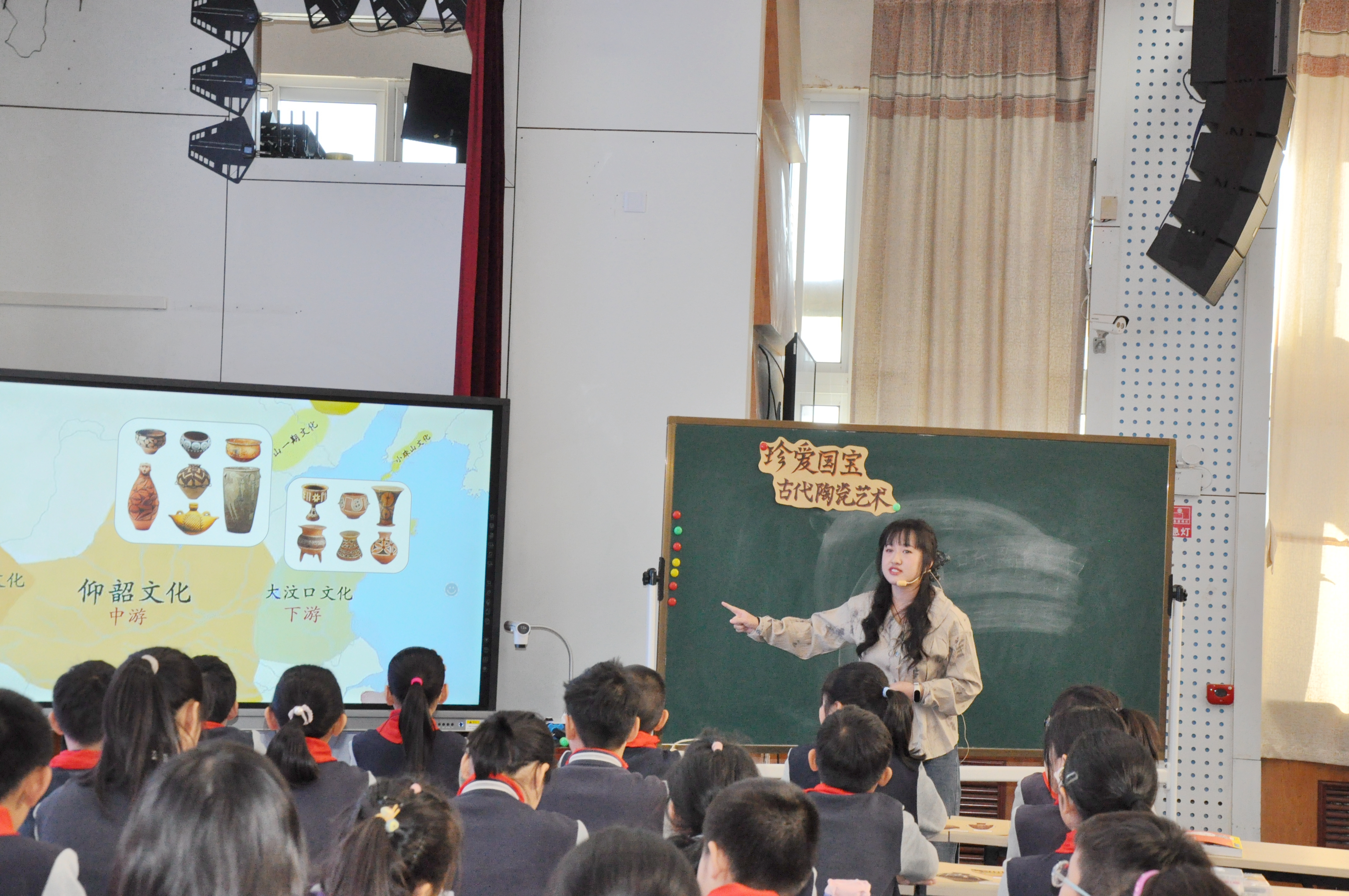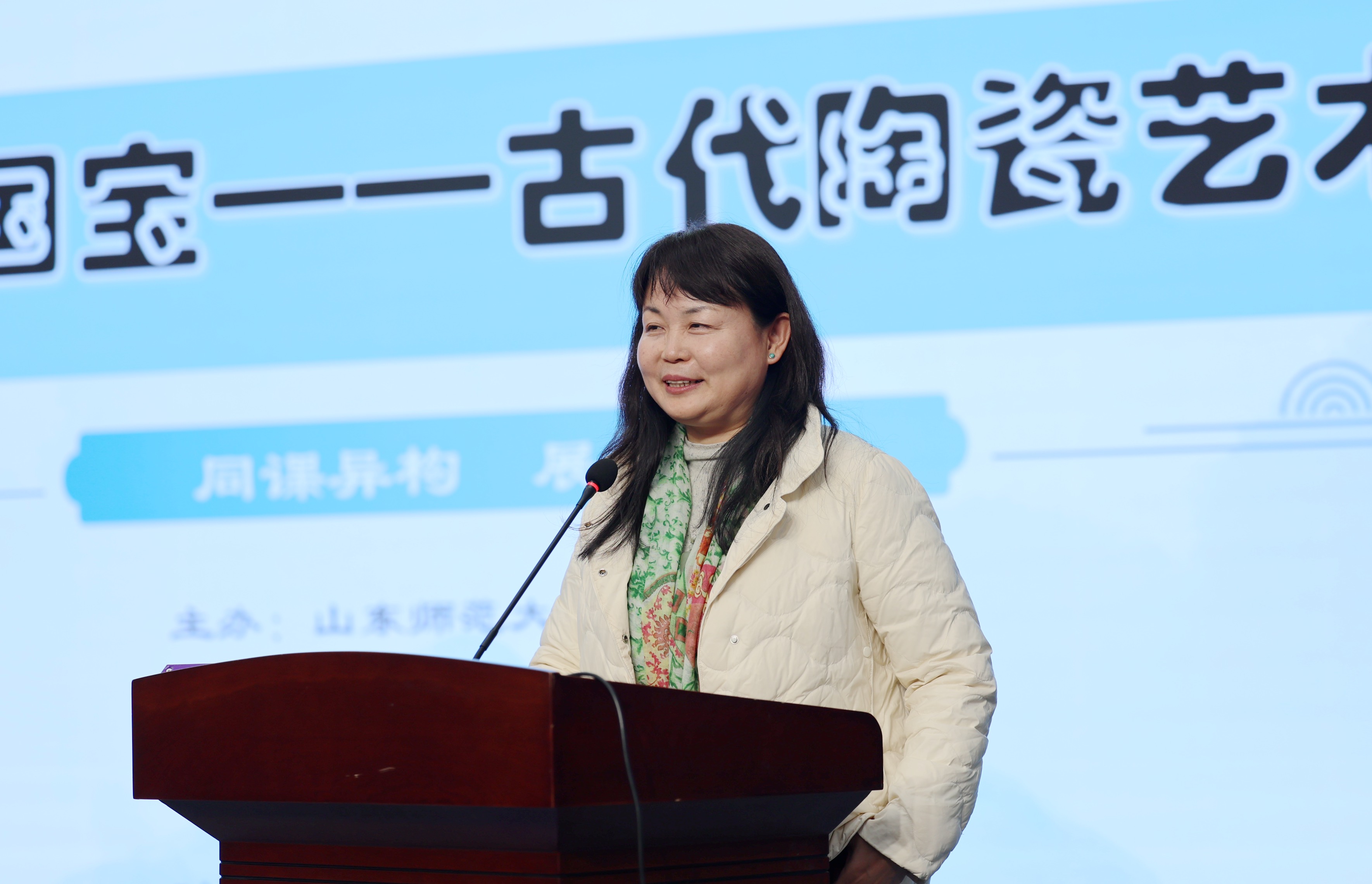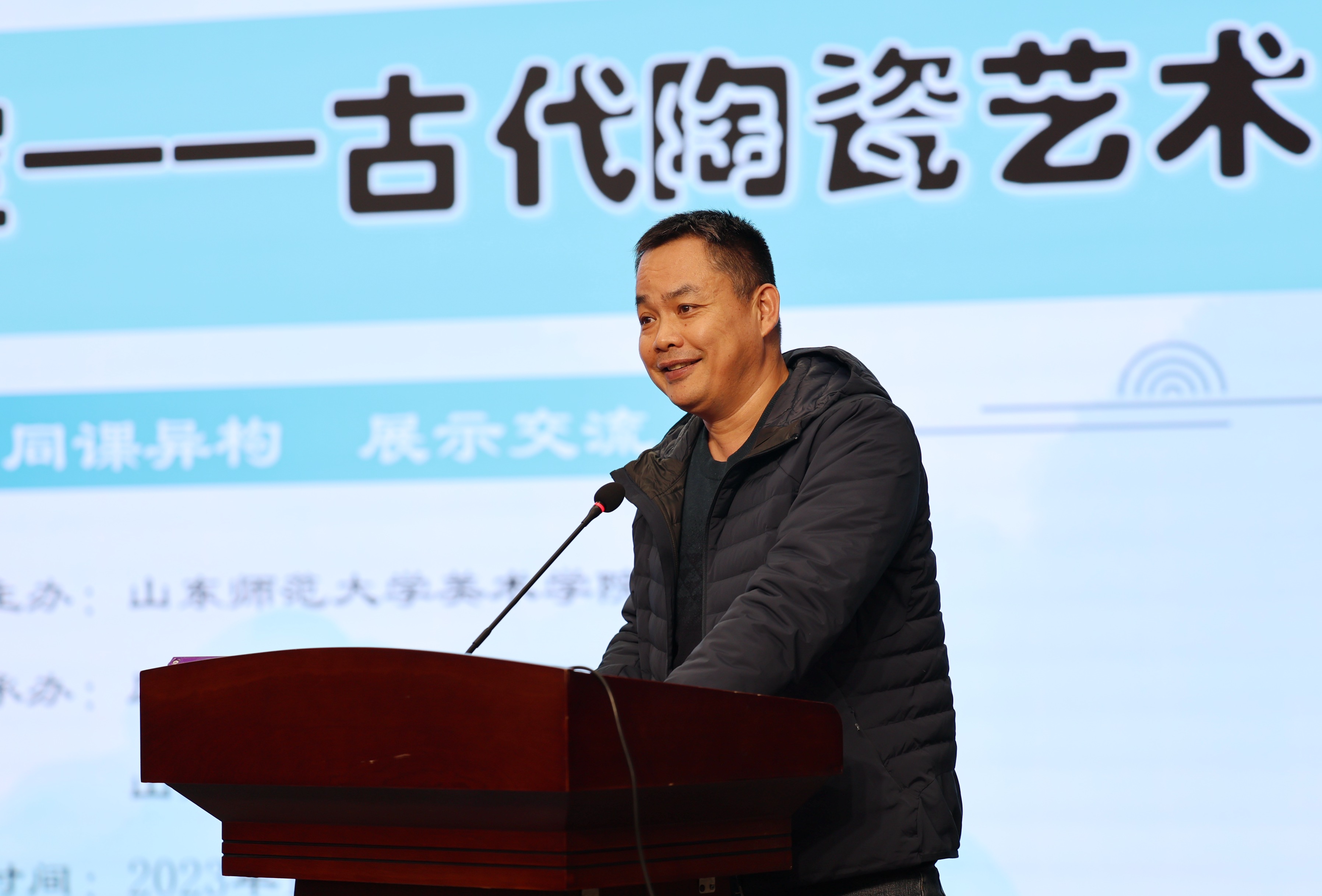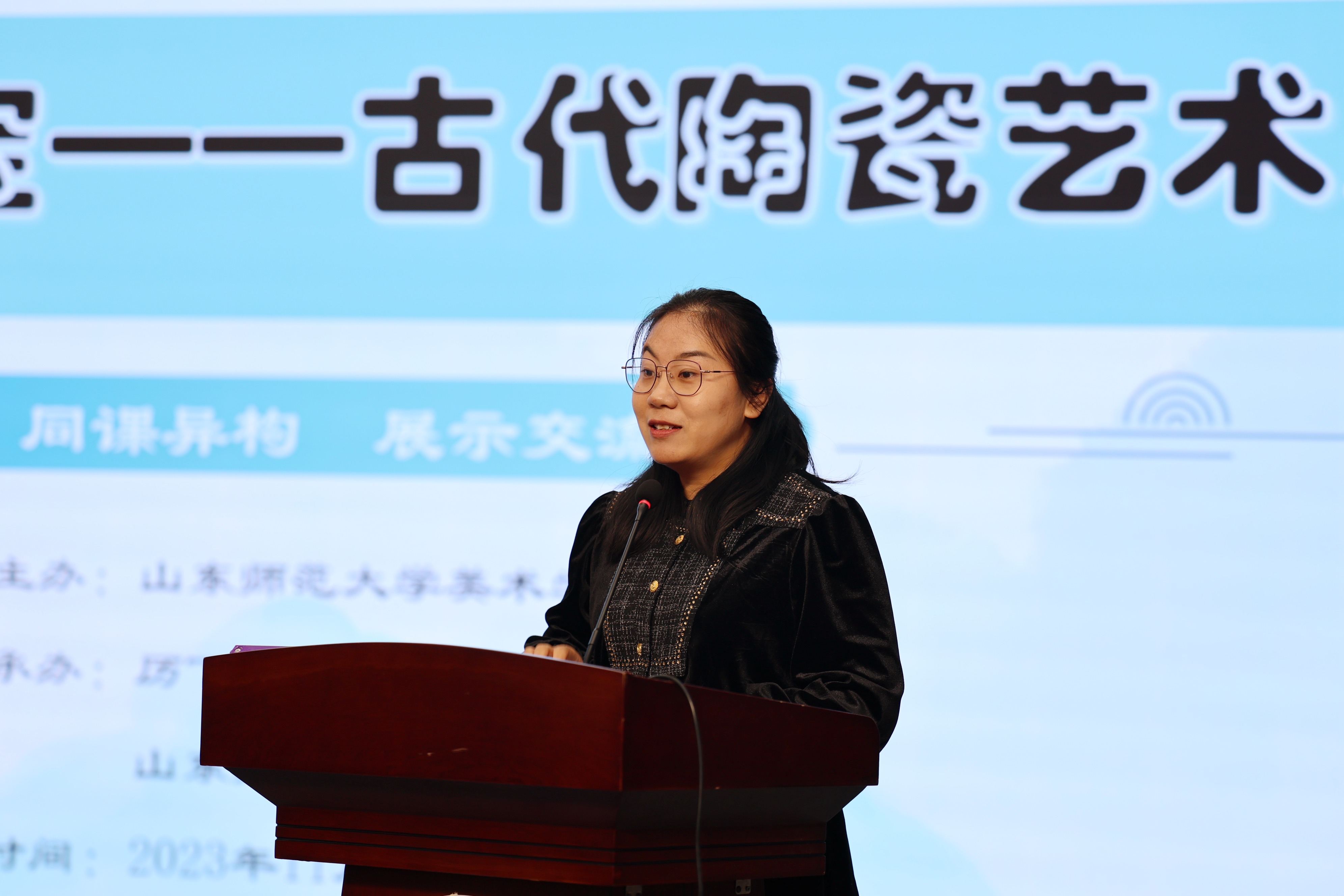 山东省教育科学研究院美术教研员肖钢、高等教育研究中心主任刘燕飞、赵燕鹏,山东师范大学美术学院美术教育系主任刘宁、教育系教研室主任丁翠红、李楠,济南市教研员张焕玉,槐荫区教研员郭立、天桥区教研员孟庆娟、高新区教研员王莹、南部山区教研员王莎,山师附小副校长曲淑华、教务处副主任曲铭、经成小学美术教师魏晓宇、龙鼎实验学校美术教师李冉、亓鑫出席,以及济南市历下区美术教师及2022级、2023级学科教学(美术)全体研究生参加了本次活动。山师美术学院2022级学科教学(美术)专业研究生虞欣南、李湘玉及山东师大附小美术教师徐凯妮就人教版五年级第九册第20课《珍爱国宝——古代陶瓷艺术》进行了展示交流。