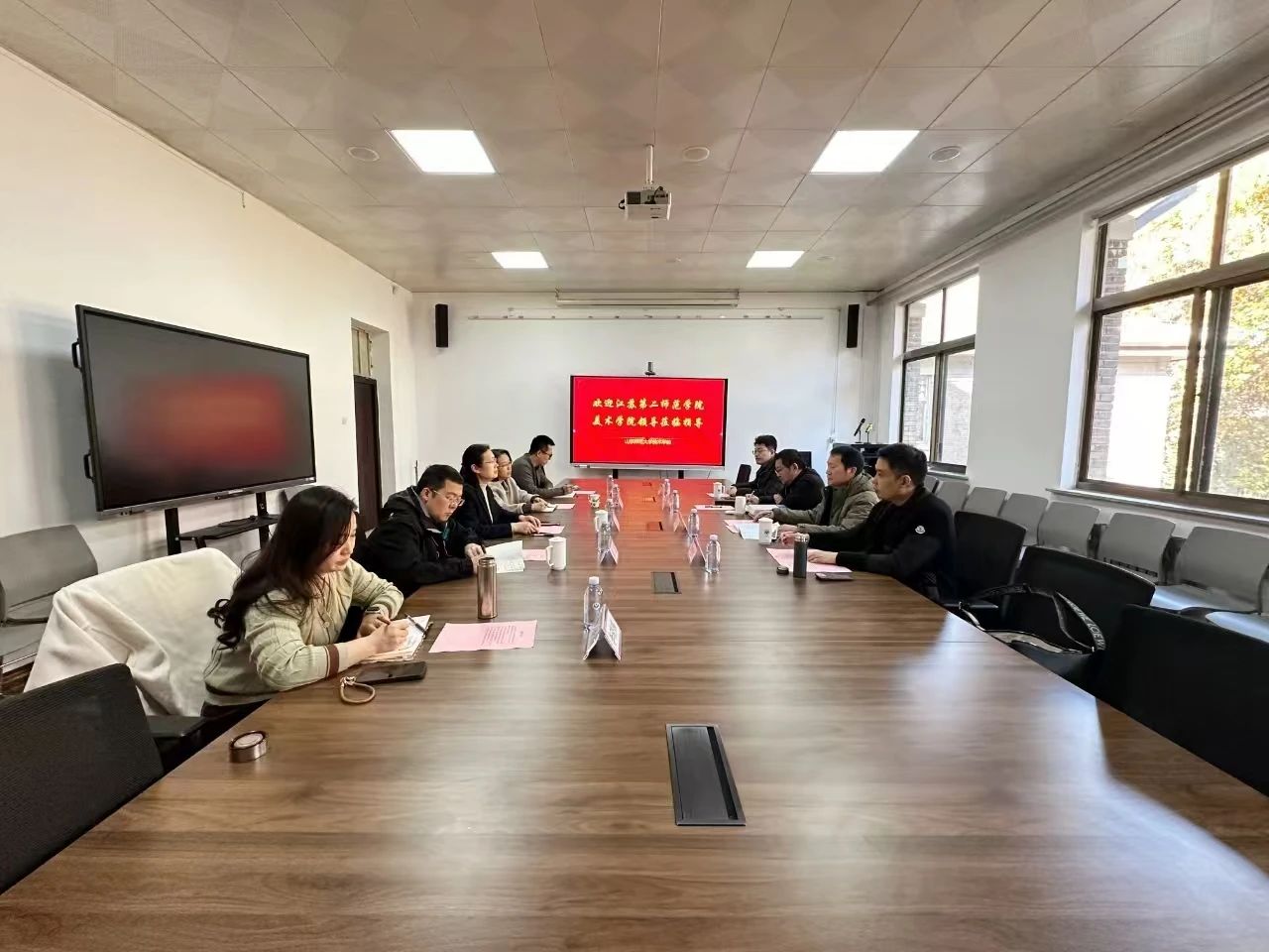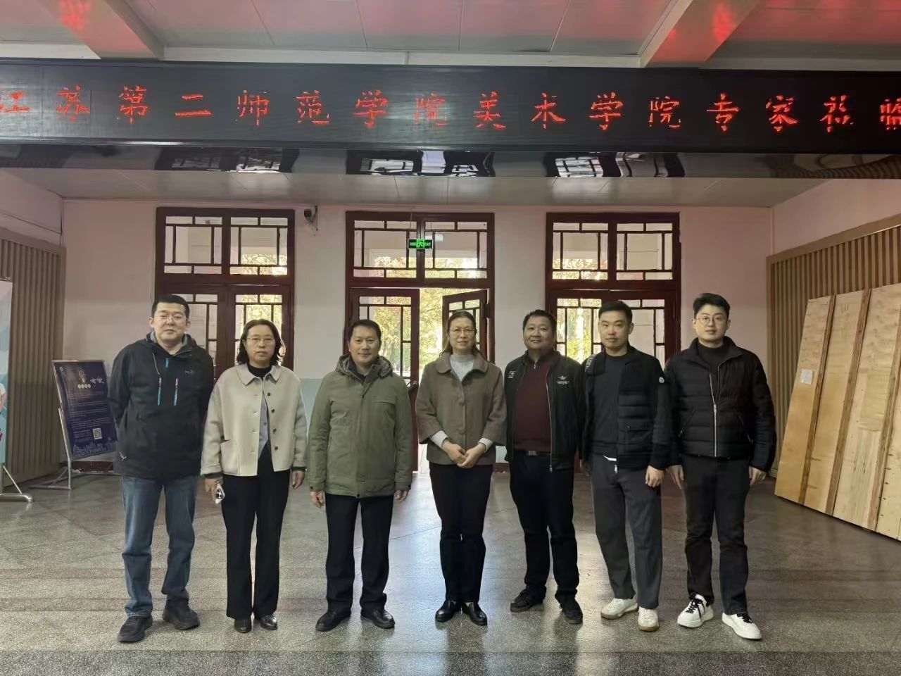 近日,江苏第二师范学院美术学院党总支副书记孙仕荣一行来我院考察交流。学院党委书记胡晓明主持座谈交流会并致欢迎辞,党委副书记葛晓霞、副院长吴磊、学术副院长孟哲、美术教育系副主任李晓娣参加座谈。