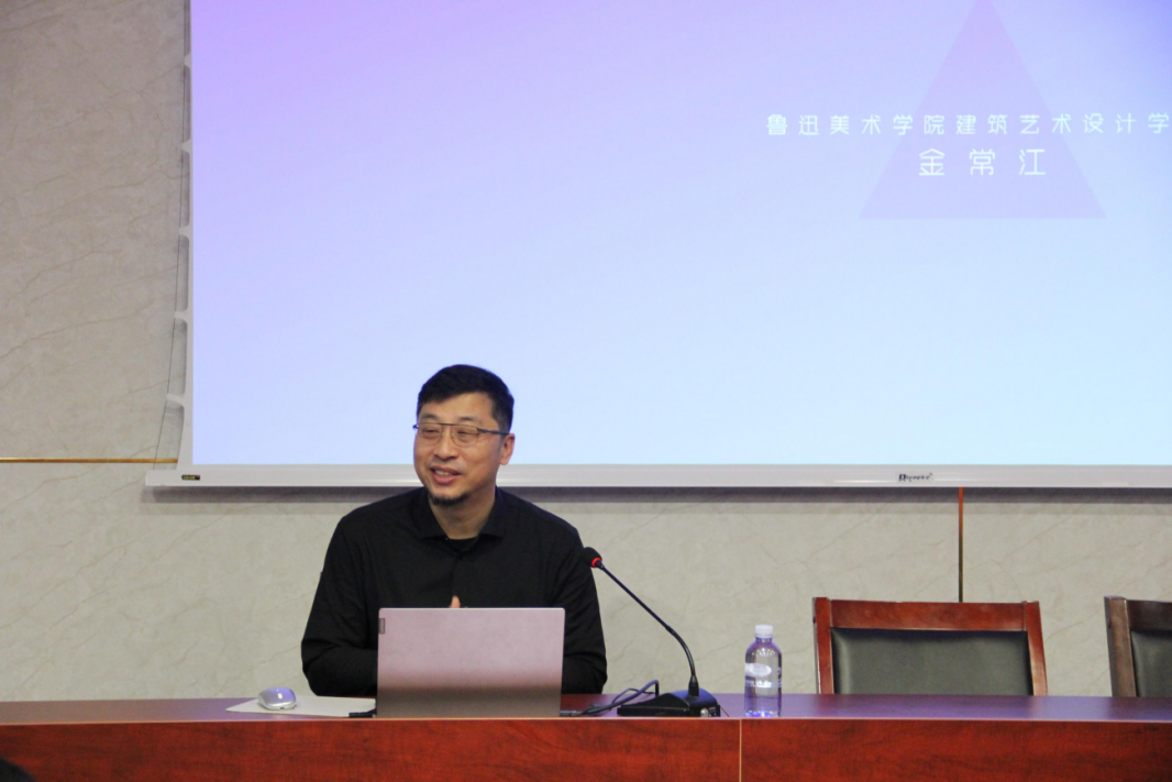 第二场讲座由金常江为师生分享了《环境设计与空间艺术形态》专题讲座。金常江提出公共空间艺术形态转化,是对现实空间和虚拟空间的构成方法论及策略研究的探讨,认为在空间环境美学的艺术设计营造实践中,应当对当代优秀的艺术与文化的内核进行剖析,并广泛应用到艺术及设计的表达语言转译场域中。演讲中,金常江运用多个研究案例及实践案例来阐释空间环境设计的艺术性营造,为环境设计专科课程建设带来了新的视角与启发。