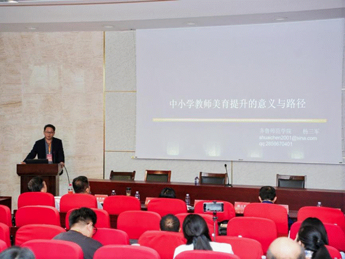 齐鲁师范学院美术学院院长杨三军教授以《中小学教师美育提升的意义与路径》为题深入探讨了美育在新时代的重要性和表现形式。他指出,美育不仅是培养学生审美能力的重要途径,更是提升学生综合素质、促进文化传承与创新的关键环节。然而现阶段中小学教师在美育培养方面仍面临诸多挑战,如人文课程安排不足、学科建设、人才培养与社会对美育技术的需求结合不够紧密等。杨院长强调,这些问题正是未来美育工作的努力方向。最后,杨院长呼吁与会的美育同仁们满怀热情,共同肩负起我国美育事业发展的重任,齐心协力推动美育工作的深入开展,早日实现“美起来”的远大目标,为培养德智体美劳全面发展的社会主义建设者和接班人贡献力量。