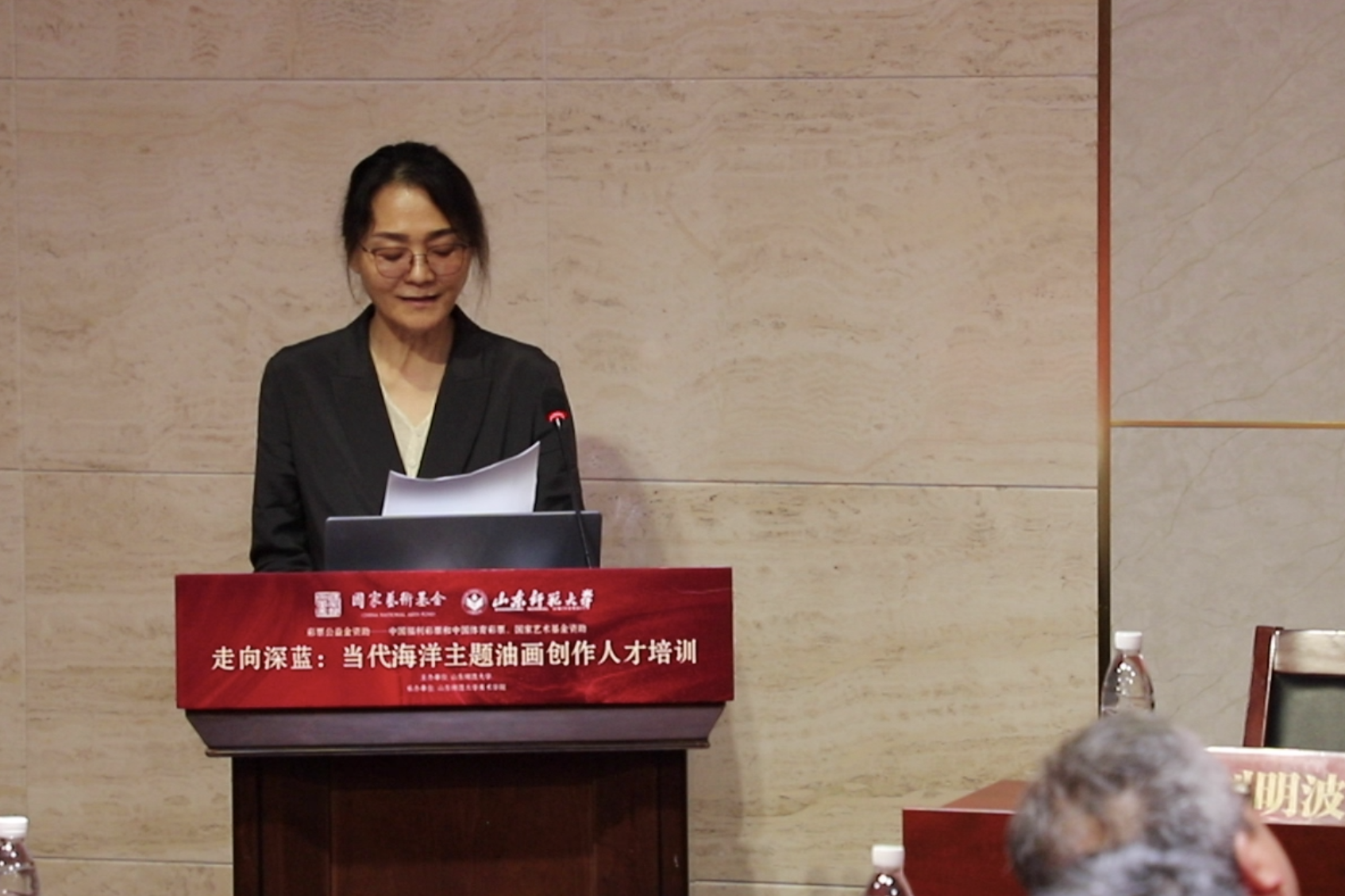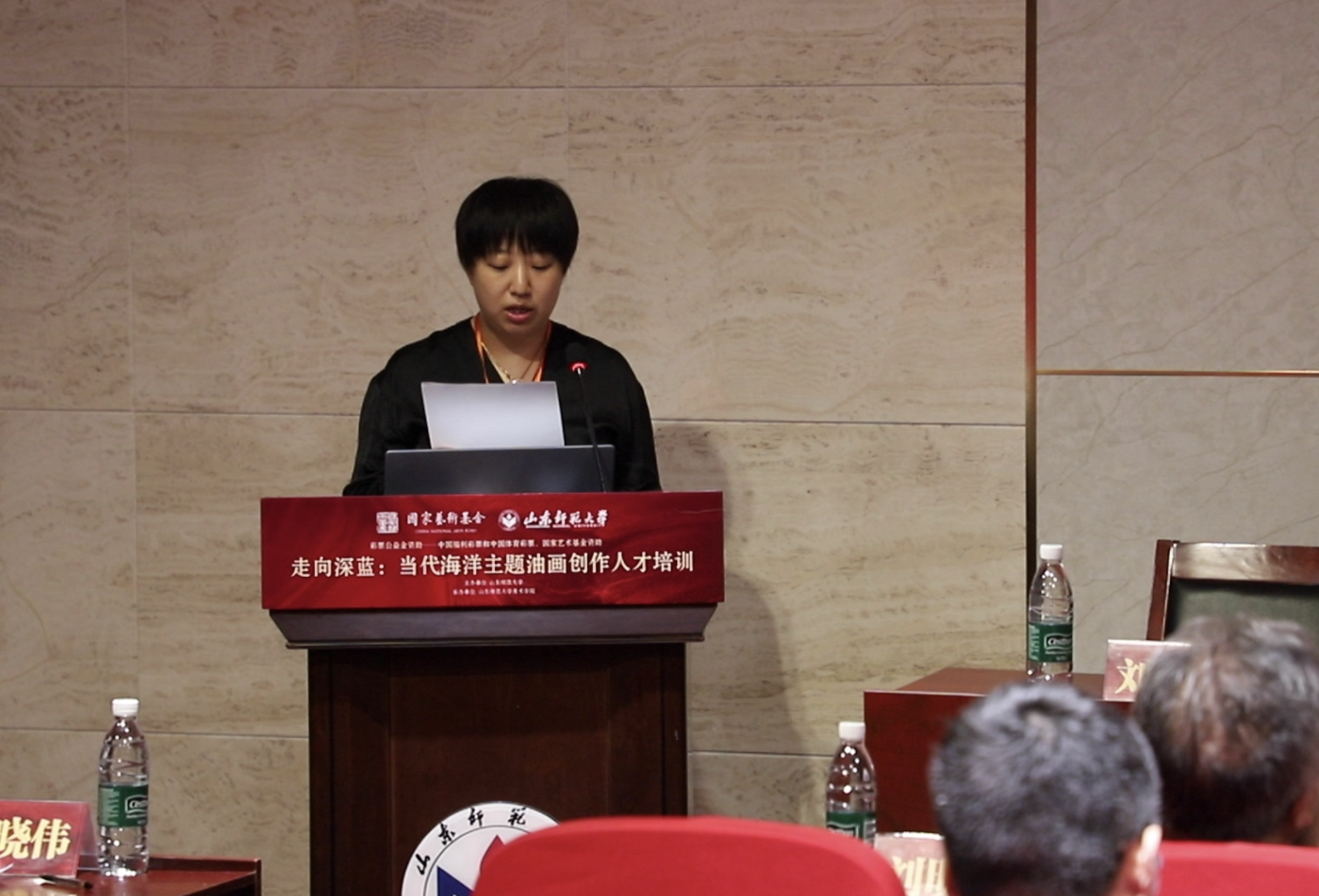 项目负责人、山东师范大学美术学院教授徐晓伟介绍了项目基本情况,中央美术学院教师曲文倩代表学员发言。